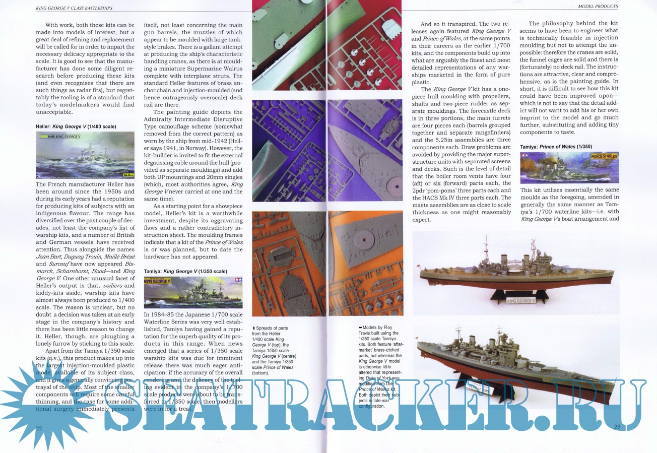 Year: 2004 Language: english Author: Roger Chesneau Genre: Technical book Publisher: Chatman Publishing Edition: ShipCraft 02 Format: PDF Quality: Scanned pages Pages count: 35 Description: The second volume in a new series providing ship modellers with all they need to know about a famous class of warship and associated model kits. The five battleships of the King George V class were the most modern to serve the Royal Navy in World War II; all rendered invaluable service in the war effort, and, indeed, the first two could be credited with influencing the very course of the conflict. Instrumental in the sinking of the battleship Bismarck, they bought about a fundamental shift in German naval policy, the emphasis moving away from heavy surface ships and towards the U-boat arm. With its unparalleled level of visual information - colour schemes, models, line drawings and photographs - it is simply the best reference for any modelmaker setting out to build one these great battleships.