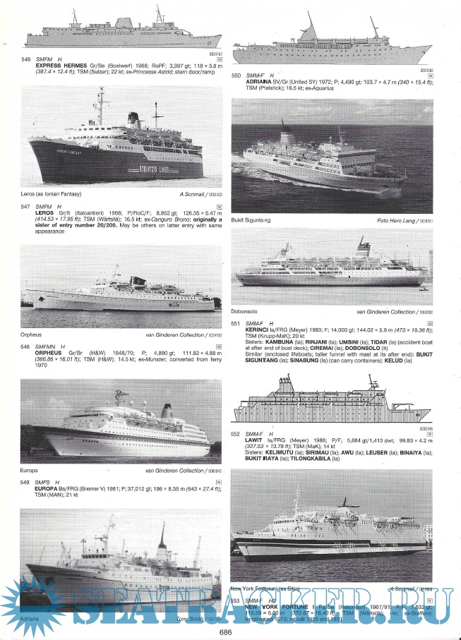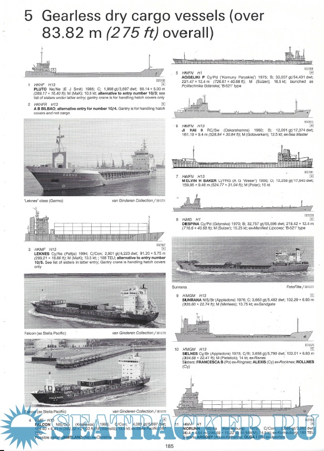 This fleet will grow by approximately a thousand ships annually and this is not always balanced by scrapping of older ships, although this has been the case in 1998 and should be in 1999. There are probably between 6,000 and 7,000 ships renamed each year, which accounts for a great deal of the amendments to the book. The upgrading and rebuilding of older vessels is also a significant factor in updating. This often increases in recessionary times, when the cost of building new ships can be prohibitive. Passenger ships are particularly affected by this. For example, older femes working in northern Europe are often sold for further service in the Mediterranean or Middle East. The differences in climate and the nature of the trade usually necessitate rebuilding, which can often radically alter their appearance. Cruise shipping, a market that has been expanding for some years, is also considerably affected by this phenomenon. Many older ships are used in this trade and market trends and safety regulations necessitate a great deal of rebuilding. Also, many of these older vessels started life carrying cargo as well as passengers. Now that they are only used for cruising, most of the cargo gear with which they were originally fitted has been removed and the large holds converted for other purposes.