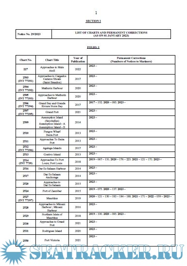 I List of Charts and Permanent Corrections (Notice No. 29) 1
