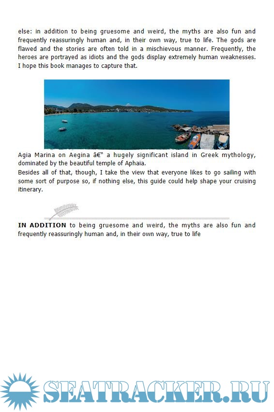 Year: 2022 Language: english Author: Jefferson S. Genre: Guide Publisher: Adlard Coles ISBN: 1472975383 Format: EPUB Quality: eBook Pages count: 213 Description: This unique and entertaining travel guide to Greek waters recreates parts of voyages undertaken in myth, anchoring off landmarks or ports associated with ancient legends. It follows the trails of Odysseus, Hercules, and Jason and the Argonauts, as well as visiting the sites where Poseidon lost his trident (off Paxos) and built his temple (on the Saronic Gulf), the cliff where Theseus's father threw himself to his death after fearing his son had been killed by the minotaur, Odysseus's ship (petrified by Poseidon and now an island in a small bay) and Troy, the remains of which survive as a reminder of the city that withstood a 10-year siege. With almost 6,000 islands in the Aegean and Ionian Seas, Greece is a maritime nation like no other – and according to its mythology this has been the case since the days when seafarers believed their fortunes, good or ill, lay in the hands of Poseidon. Sailing through these crystal clear waters today is a voyage into history, whether true or legendary. Retelling all the myths, from the very well-known to the less familiar, In the Wake of the Gods is a cruising companion to be read and enjoyed in its own right. With the author's in depth knowledge of the region, it is also packed with useful and practical pointers for pilotage and passage planning, including information about prevailing winds and anchoring, along with charts and photography. Additional info: About the Author Sam Jefferson is a journalist and maritime historian, and is one of the leading authorities on the clipper ship era. He is Editor of Sailing Today, and writes regularly for Classic Boat and Traditional Boats and Tall Ships. He is the author of Clipper Ships and the Golden Age of Sail, Gordon Bennett and Sea Fever, all published by Adlard Coles Nautical.