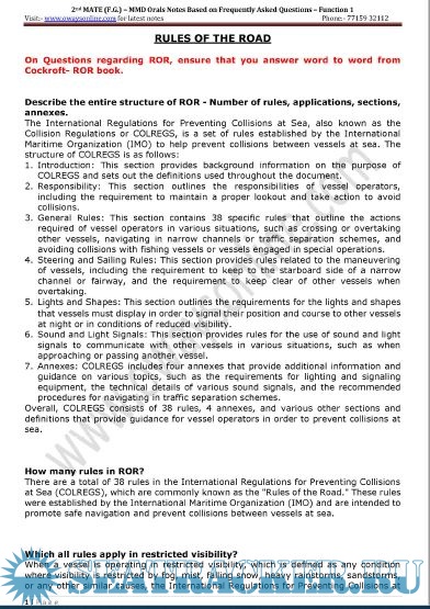 Year: 2023 Language: english Author: Oways Online Edition: February Format: PDF Quality: eBook Pages count: 49 Description: 2nd Mate F.G. Mercantil Marime Department, India Orals Exams Notes Based on Frequently Asked Questions: Function 1