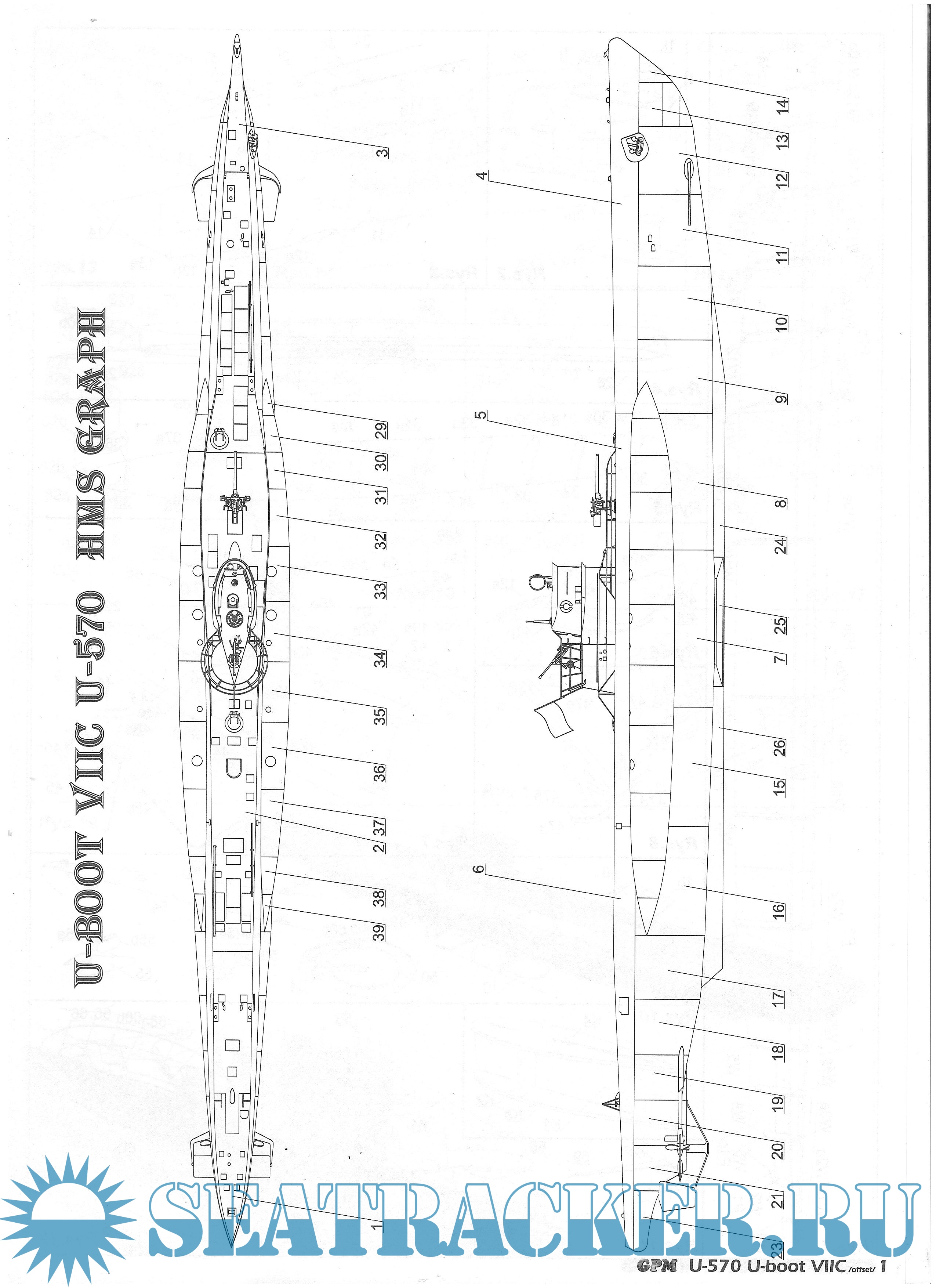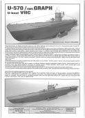 Описание: 16 листов цветных выкроек и инструкций для изготовления бумажной модели германской подводной лодки U-570 в масштабе 1:100