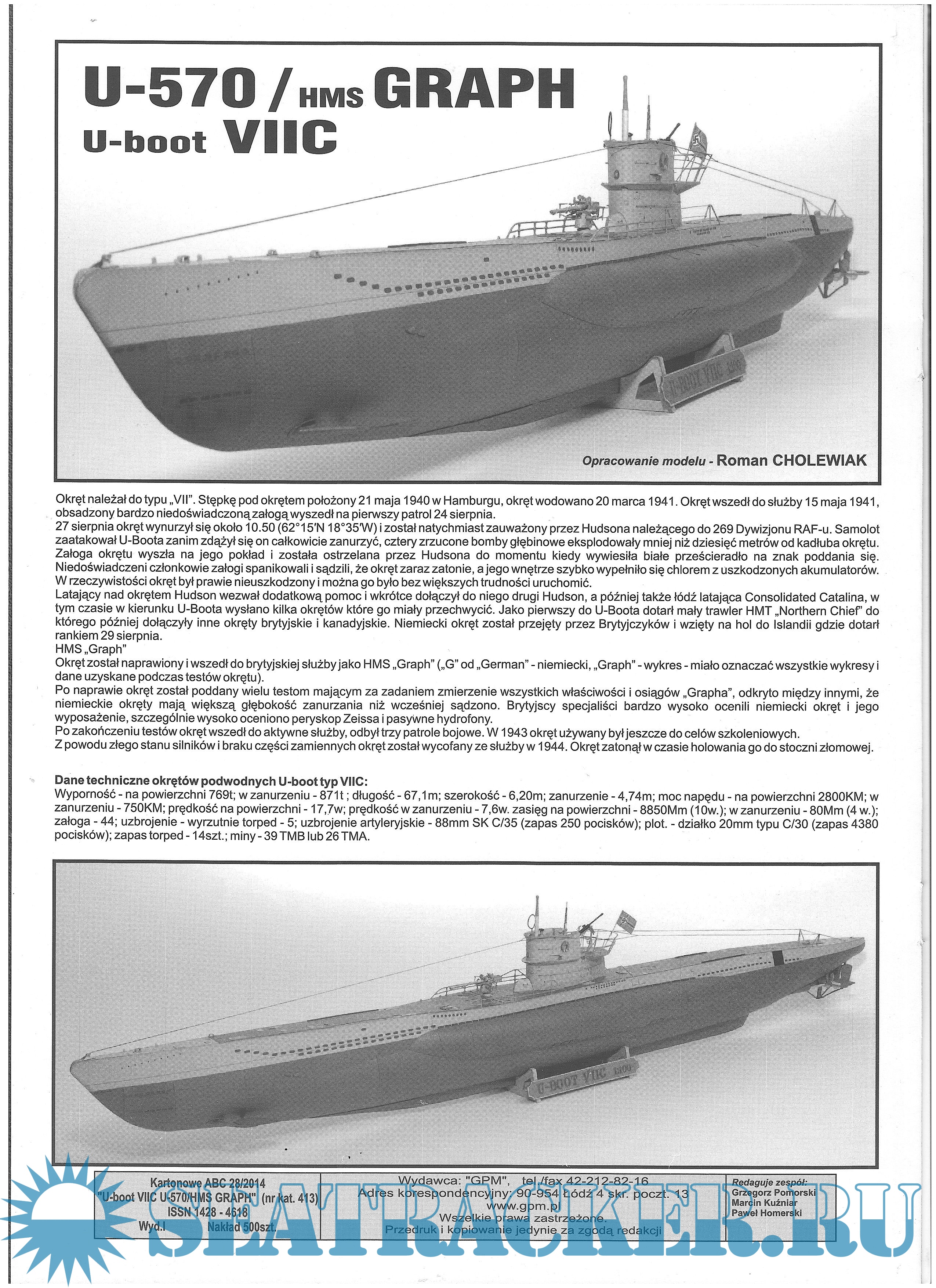Польская подводная лодка ORP Orzel (модель из бумаги) - Roman Staszalek [2008, JPEG]