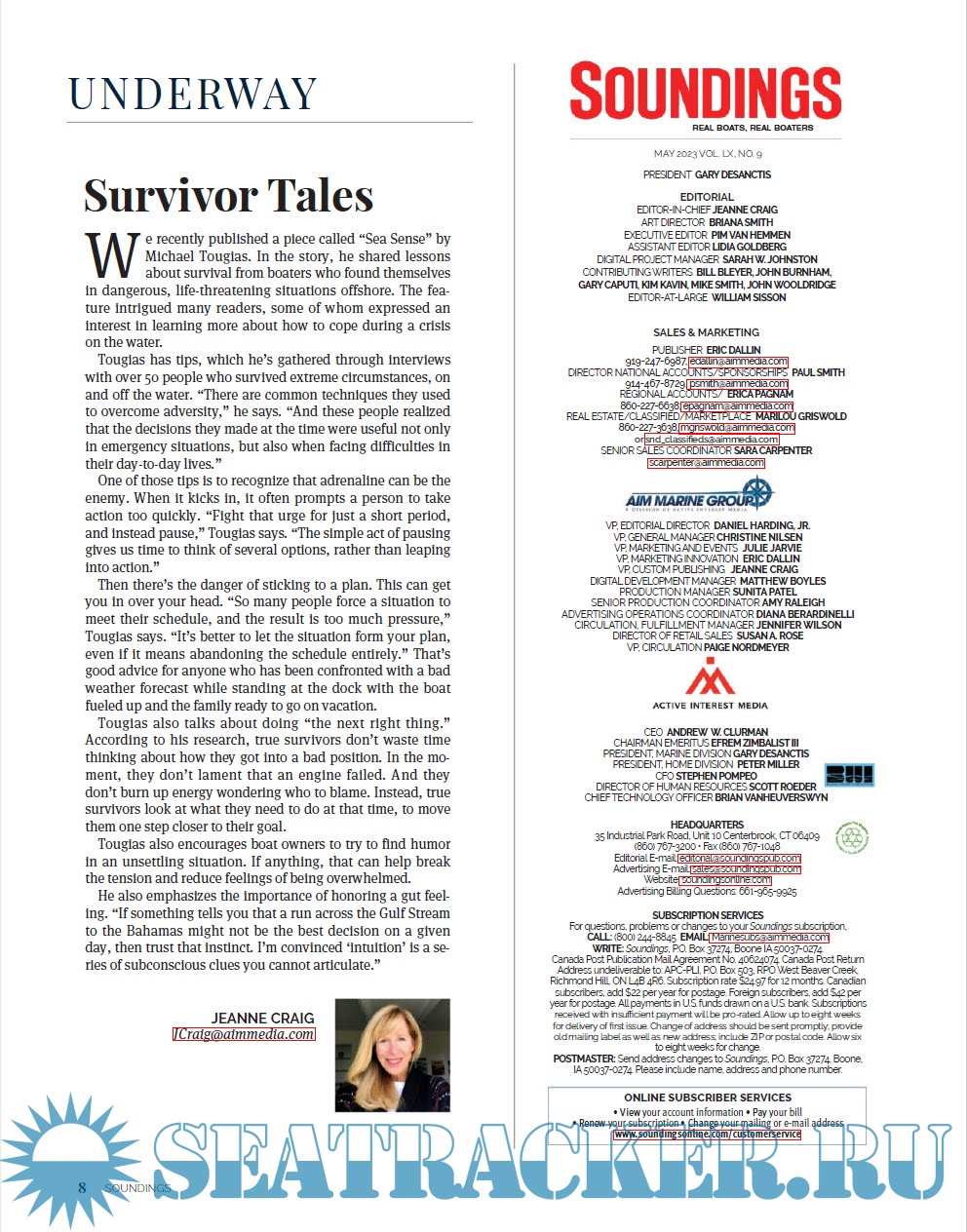 Description: Soundings is the news and feature publication for pleasure boaters.Soundings Magazine entertains and informs a loyal audience of passionate boaters. Our award-winning coverage is designed to inspire and educate our engaged owner/operator audience on the latest developments in boating, while also exploring the heritage, history and passion for our pastime that serious enthusiasts share. SOUNDINGS continues to uphold the highest standards of journalism in all our print and digital offerings.