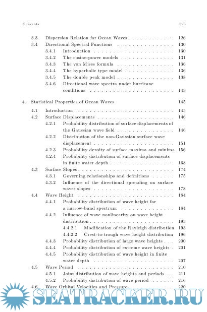 Year: 2007 Language: english Author: Massel S.R. Genre: Technical book Publisher: World Scientific Publishing Co Edition: 2nd ISBN: 9814460117 Format: PDF Quality: Scanned pages Pages count: 794 Description: New Edition: Ocean Surface Waves: Their Physics and Prediction (3rd Edition)The book is an extended and updated edition of the book published in 1996 under the same title (World Scientific, ISBN 9810216866). It contains a very comprehensive and extensive study on surface ocean waves induced by wind, earthquakes and possible landslides and asteroids impacts. The basic mathematical principles, physical description of the observed phenomena, practical forecasting techniques of the various wave parameters and extended application in ocean and coastal engineering, are discussed from the stochastic point of view.All chapters were completely rewritten and supplemented with many new discoveries which were published since the first edition in 1996. In particular, new chapters are added on very interesting and contemporary topics such as: wave breaking mechanisms in deep- and shallow water, freak waves, tsunami, water circulation in porous sea bottom induced by surface waves, and waves propagation through mangrove forests.In terms of numerical modeling, the state of the art of the modern methodology of wave prediction models WAM and SWAN, as well as of the high sophisticated satellite methods of waves measurement and modern methods of signal processing, including wavelets approach and Hilbert Transform approach are presented. The book is supplemented with an extended list of relevant and extended, contemporary bibliography, subject index and author index.