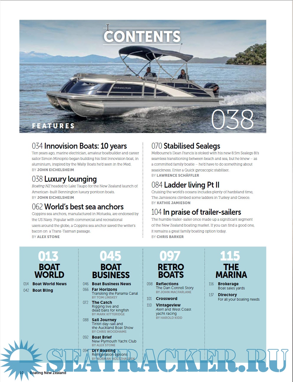 Description: Boating NZ is New Zealand's premier marine title devoted to putting its readers behind the wheel of the latest trailerboats, yachts and launches to hit the market. It inspires with practical content and cruising adventures, leads the fleet with its racing coverage and is on the pulse of the latest maritime news and innovation.