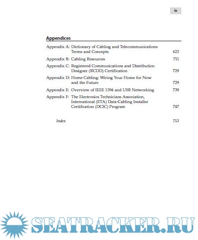 Additional info: A cabling dictionary is included at the end of the book so you can look up unfamiliar terms. Five other appendixes include resources for cabling information,