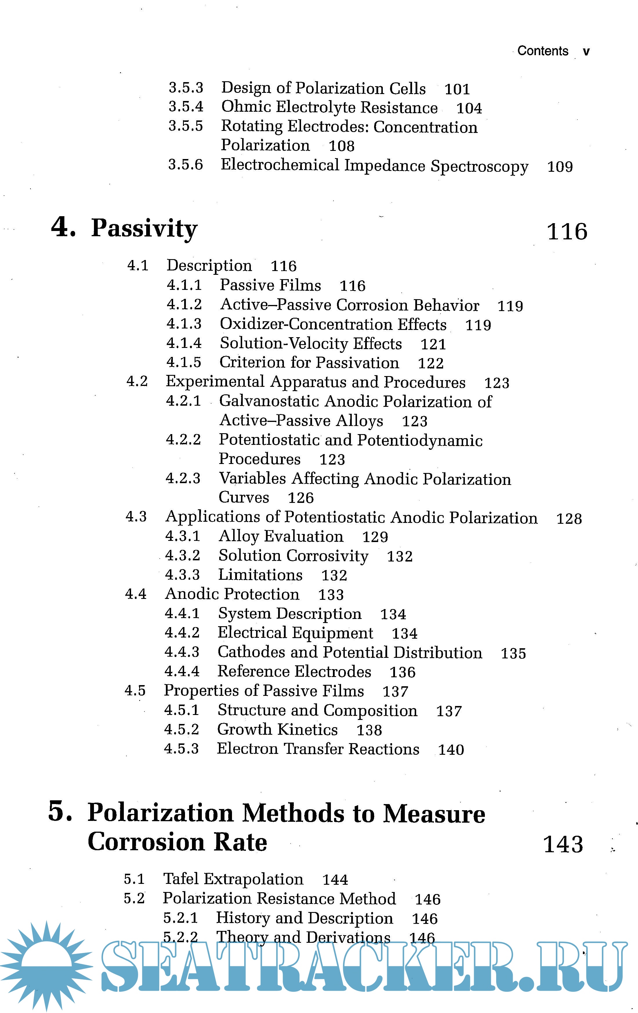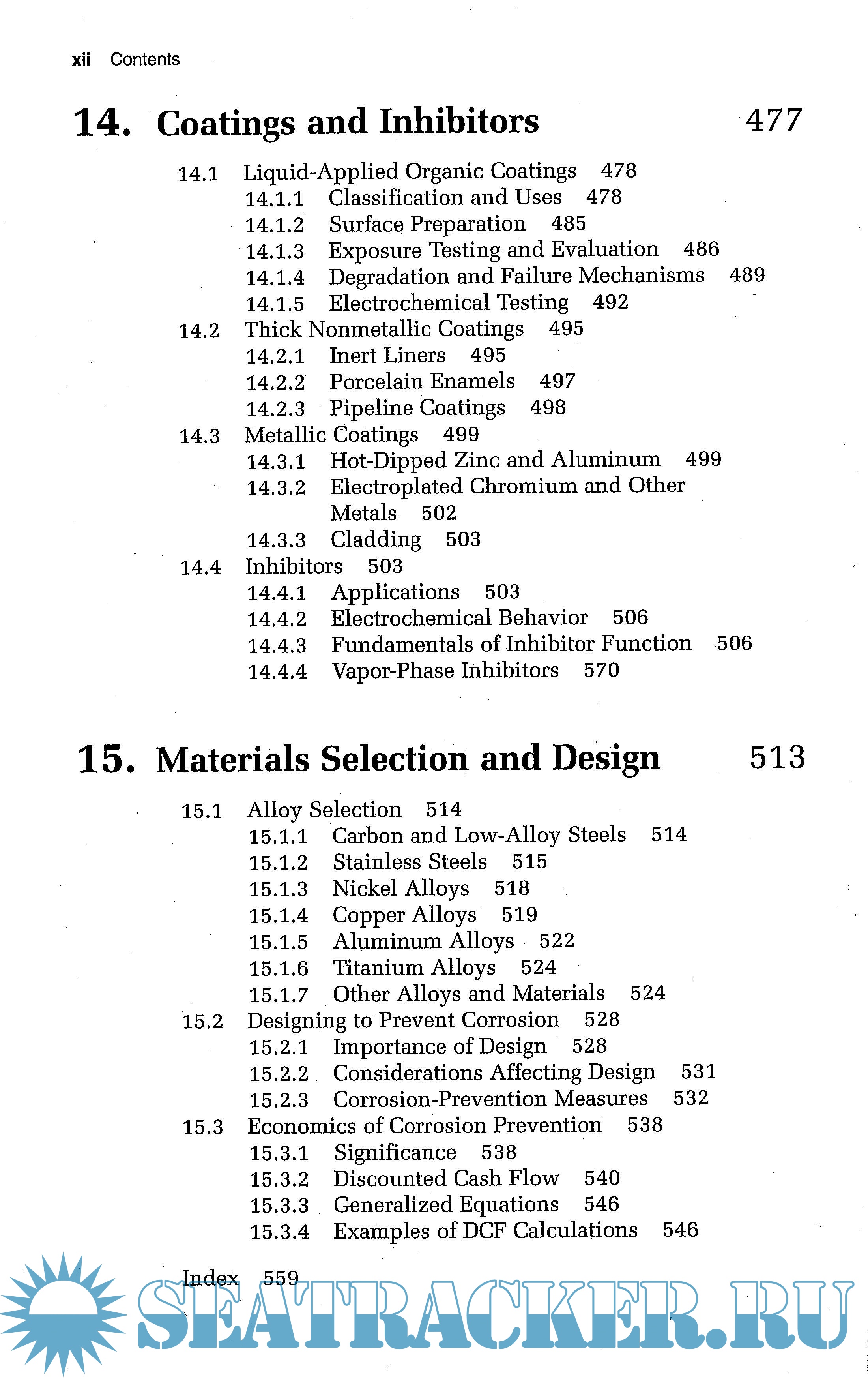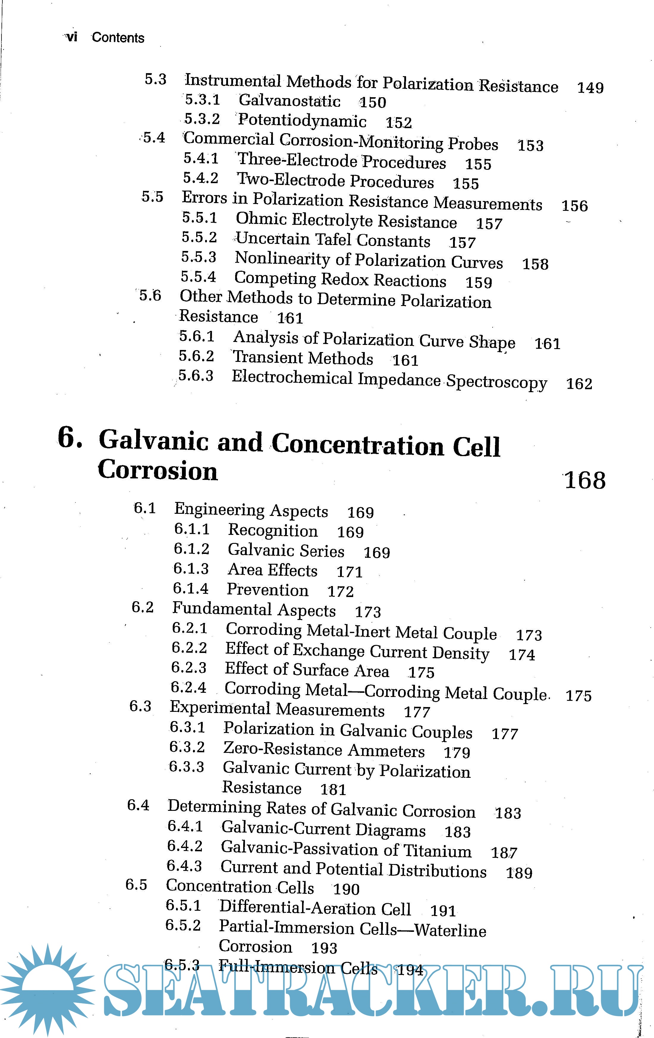 Year: 1992 Language: english Author: Denny A Jones Publisher: Prentice-Hall ISBN: 0-13-359993-0 Format: PDF Quality: OCR without errors Pages count: 583 Description: Comprehensive in approach, this text explores the scientific principles and methods that underlie the cause, detection, measurement, and prevention of many metal corrosion problems in engineering practice. Most chapters progress from qualitative, descriptive sections (including methods of prevention and testing), to more quantitative sections (involving metallurgy and electrochemistry), and finally to sections on current research developments in the chapter topic.