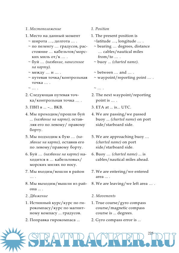 The purpose of the manual is the further development of oral speech skills, the expansion and systematization of vocabulary. The five sections of the manual cover the topics necessary for the work of an officer on duty. The text material is taken from international conventions, manuals published by the United Kingdom Maritime Institute for boatmasters, as well as from the instructions of shipping companies. Designed for senior cadets of the specialty 180402.65 "Navigation". Also, the manual can be used in the preparation of shift assistants for certification in English.