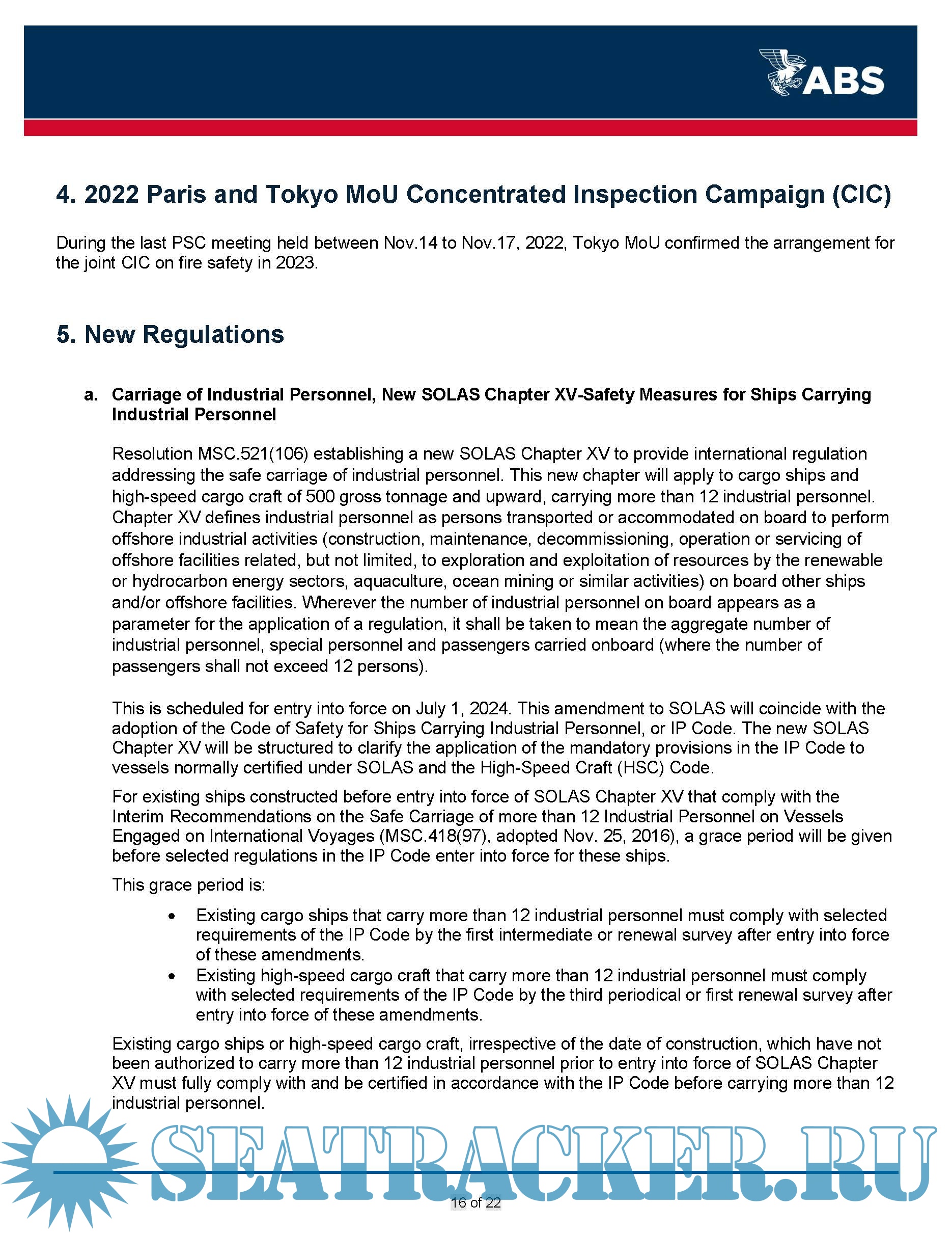 Description: The ABS Quarterly Report on Port State Control (PSC) provides information to owners on deficiencies identified on ABS vessels during inspections carried out by the various PSC regimes globally during the 4th Quarter of 2022. This report is made available to assist owners by providing awareness of potential areas of concern that have been identified on ABS classed vessels.