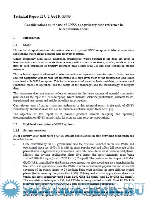 GSTR-GNSS: Considerations on the use of GNSS as a primary time reference in telecommunications