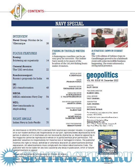 Description: Geopolitics’ December, 2022 special edition primarily focusses on the ongoing modernisation and expansion of the Indian Navy.