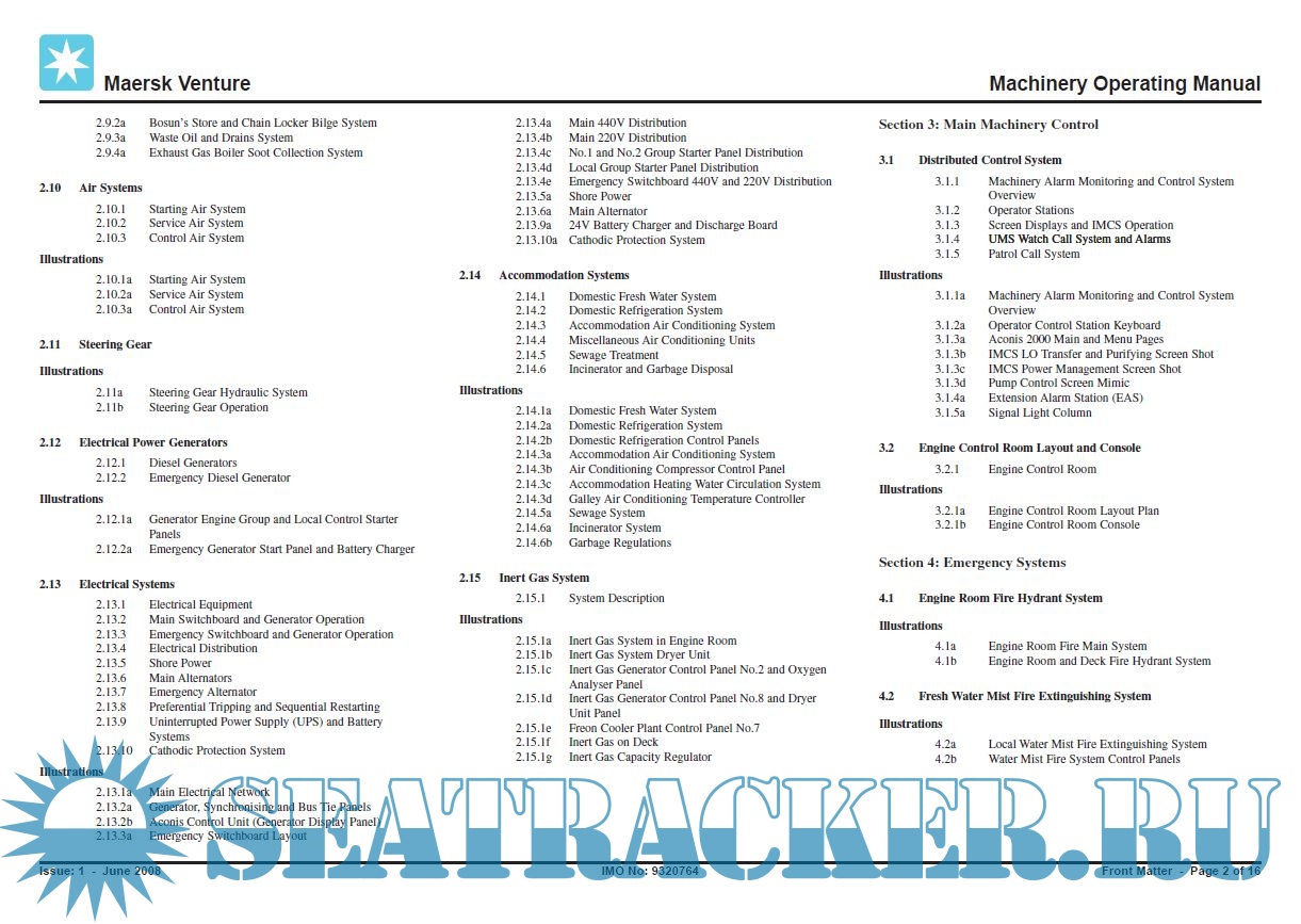 Year: 2008 Language: english Author: Worldwide Marine Technology Ltd Genre: Manual Publisher: Worldwide Marine Technology Ltd Format: PDF Quality: eBook Pages count: 1036 Description: BW OAK is a LPG carrier built in 2008 by HYUNDAI SAMHO HEAVY INDUSTRIES CO. LTD. - INCHEON, SOUTH KOREA. Currently sailing under the flag of India. Formerly also known as BW OAK, MAERSK VENTURE. It's gross tonnage is 47386 tons. There are three operating manuals - for deck, cargo and machinery. Additional info: Pdf files contain bookmarks for easy navigation.
