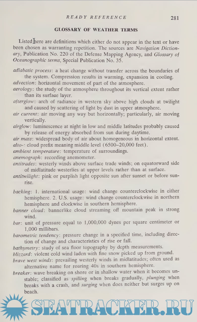 Description: Weather disturbances occur in the atmospheric sea towering overhead and since all of us, even astronauts, live on the bottom of that sea we should know a lot about weather. But what we usually experience are only the swirls and eddies at our location. A meteorologist interprets data received from widespread observers so his view is broader. Yet since he doesn’t actually experience the atmosphere they report his perceptions can be uncertain. And an airman’s view is also less real. Weather disturbances are so dangerous to him that he tries to avoid them by flying above or around but not through them. By contrast a mariner’s encounter with weather is more tangible. During one voyage he might leave Puget Sound in winter, a week later be standing watch in the Tropics and within another week be off Australia in its summer. But this book is not entitled Mariner’s Weather to suggest it is primarily for mariners; nor does it flaunt the jargon of meteorology. In ordinary language it sifts decades of experience gained by mariners coping with atmospheric swirls and eddies all over the world at all times of the year. The result is a commonsense book for everyone ...and that could be why it is so well received.