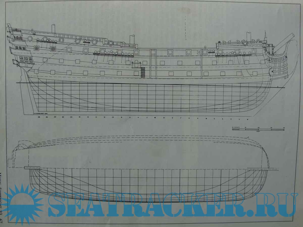 Архивные чертежи 68-пушечного парусного корабля HMS "Agincourt" 1796 год - нет данных…