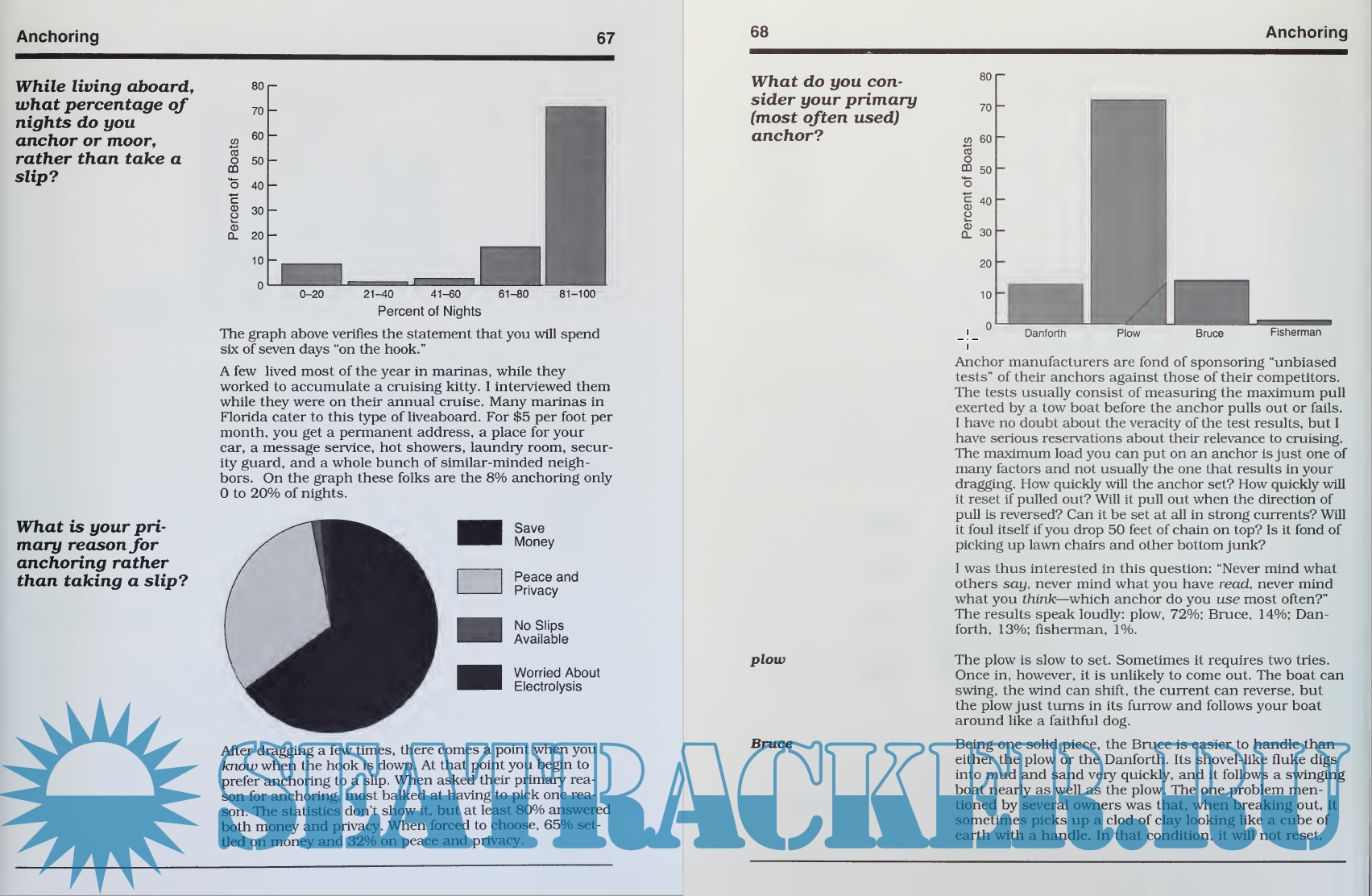 Description: What do you get when an ex-NASA engineer and statistician turned bestselling how-to-writer decides to move aboard a boat? The Liveaboard Report, a statistical analysis filled with bar charts and pie graphs that quantifies what works and what doesn't for a representative sampling of liveaboard boaters. Charlie Wing interviewed 71 liveaboards of all sorts, and asked them 400 questions about what most aspiring liveaboards want to know: What does it cost? What boat should I get? Is refrigeration worth the hassle? What anchor works best? This book is different from other liveaboard guides. This author doesn't say, "Listen up--I am an expert, and this is the way to do it." Instead, he says "I asked this question of 71 crews with 277 collective years' experience living aboard. Three percent said X, 20 percent said Y, and 77 percent said Z. Let that be your guide."