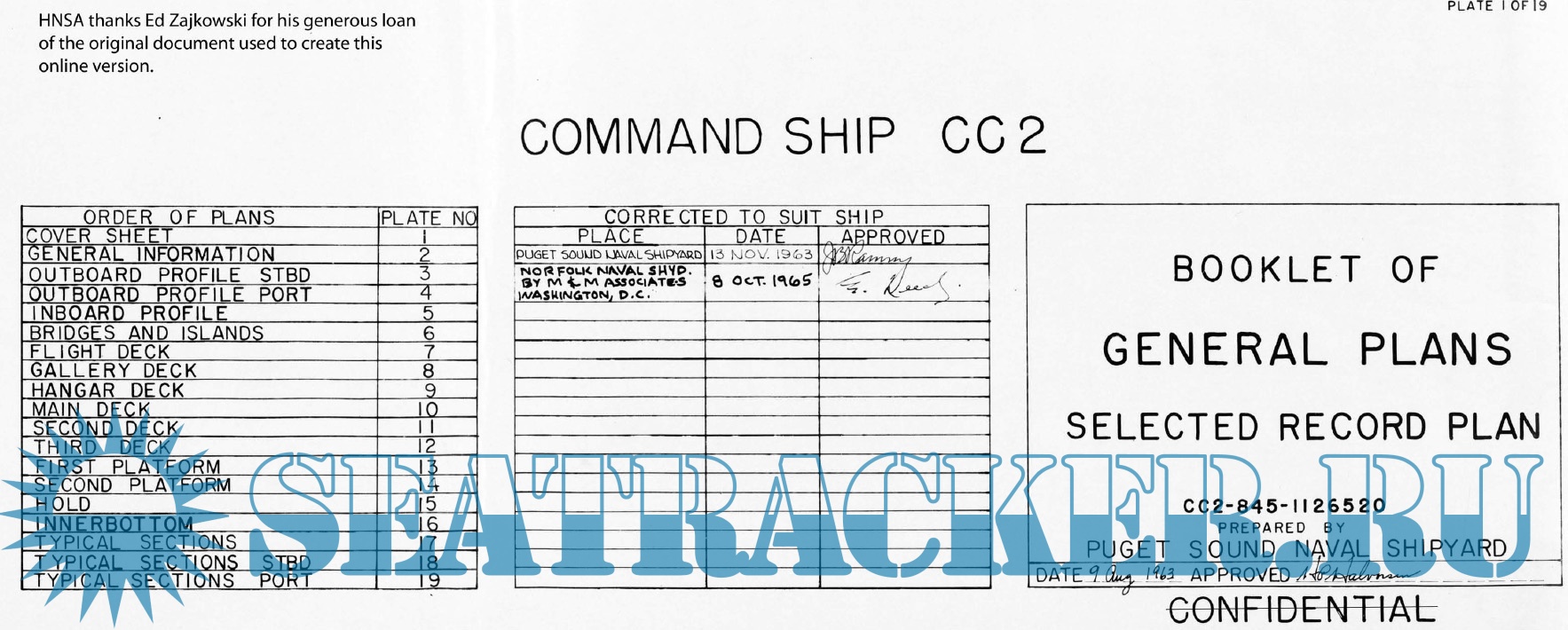 19 листов архивных чертежей авианосца США CC-2 (ex CVL-49) - USS Wright (тип Saipan) по состоянию на 1963 год