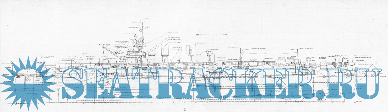 Архивные чертежи лёгкого эскортного авианосца США CVL-26 USS Monterey (1943-1956) по сотоянию на 1950 год