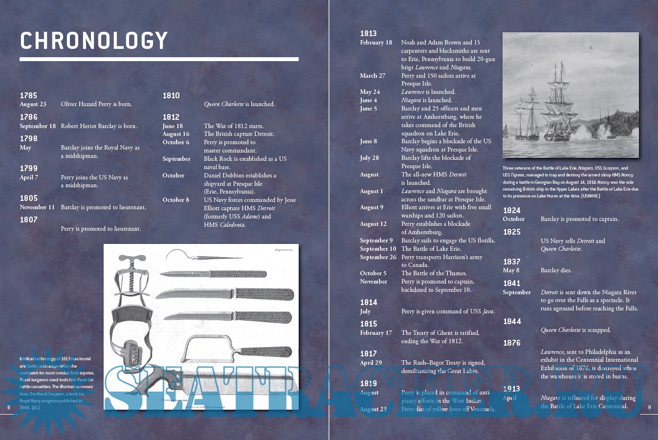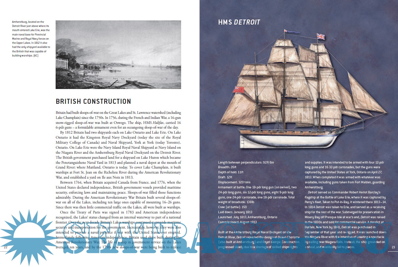 Description: Most of the critical naval fighting during the War of 1812 took place, not on the high seas, but on the inland lakes of North America: the Great Lakes and Lake Champlain. Carrying between 12 and 22 cannon, the British and American sloops-of-war were ship-rigged, brig-rigged or schooner-rigged vessels with their guns on a single deck. Actions often involved two ships facing each other broadside to broadside, the best example of which was the battle of Lake Erie in 1813 where HMS Detroit led a Royal Navy squadron against the USS Lawrence-led US Navy.