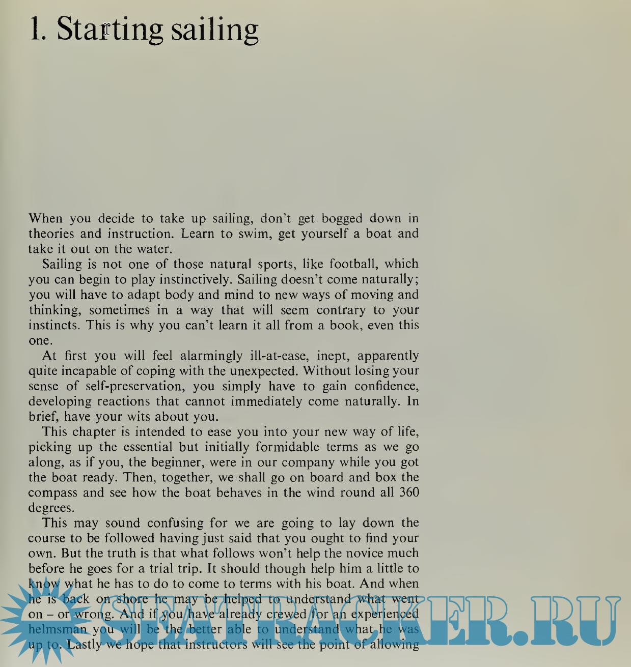 The course is a synthesis, neither an encyclopedia, nor a mere compilation. We have only included what seems to be essential in the experience of succeeding generations of sailors and instructors - during more than a quarter of a century at Glenans.