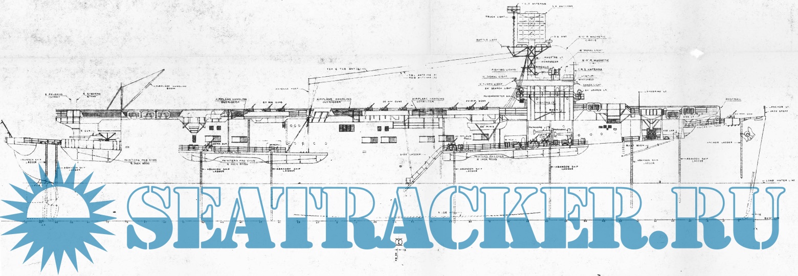 Архивные чертежи эскортного авианосца США CVE-53 USS Willapa (D79 - HMS Puncher) (тип Bogue) по состоянию на 1944 год.