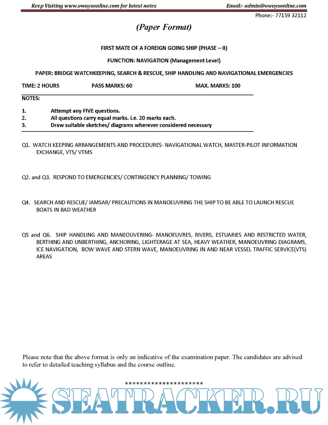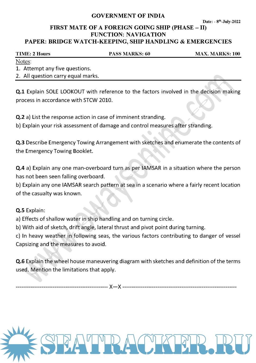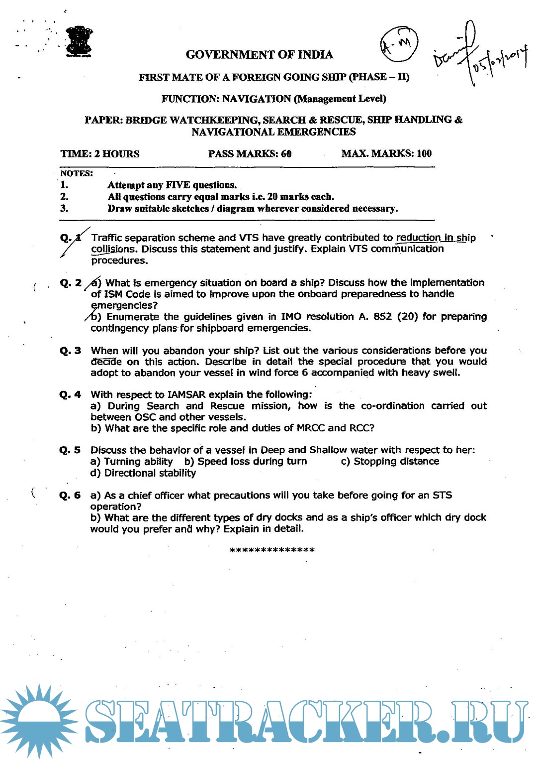 Description: Question paper set for Mercantile Marine Department (MMD), India Exams for Phase II - Chief Mate (F.G.).