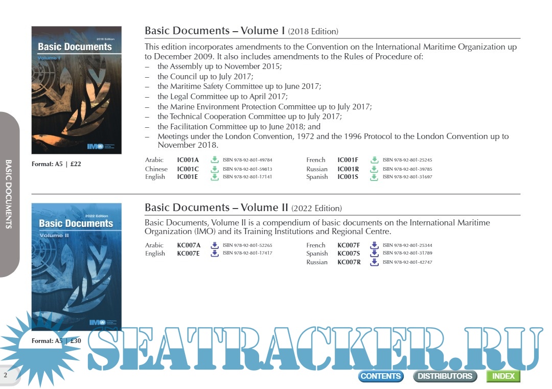 Description: IMO has published over 200 titles available in English, French, Spanish, Arabic, Chinese and Russian.For your convenience, the publications catalogue lists all titles issued in printed and electronic format. Book code lists are available for easy reference.