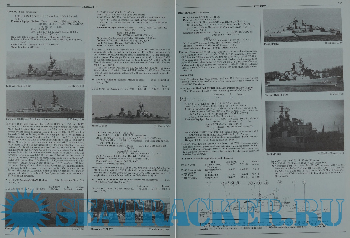 Year: 1990 Language: english Author: Bernard Prezelin, A.D. Barker Genre: Reference book Publisher: Naval Institute Press Format: PDF Quality: Scanned pages Pages count: 1000 Description: A reference work which describes entire naval programs, this guide contains essential data on ship characteristics, performance, crew complements, aircraft, electronics and weapons. There is coverage of more than 165 nations and the book is up-to-date with the latest developments.