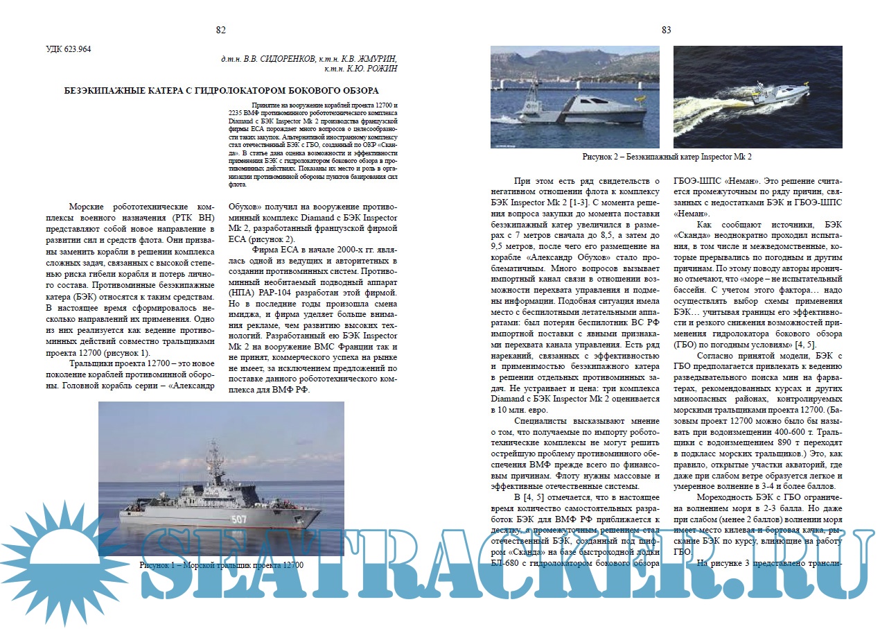Год выпуска: 2020 Язык: русский Автор: Трушенков В.В. Жанр: Периодическое издание (журнал) Издание: 2020-02 Формат: PDF Качество: Изначально компьютерное (eBook) Количество страниц: 68 Описание: Научно-технический сборник «Подводное морское оружие» издаётся с 2003 года и является периодическим научно-техническим изданием. На страницах сборника публикуются аналитические материалы по актуальным научно-техническим вопросам проблемного и дискуссионного характера, раскрываются задачи и анализируются возможности создания новых образцов морского подводного оружия (МПО)
