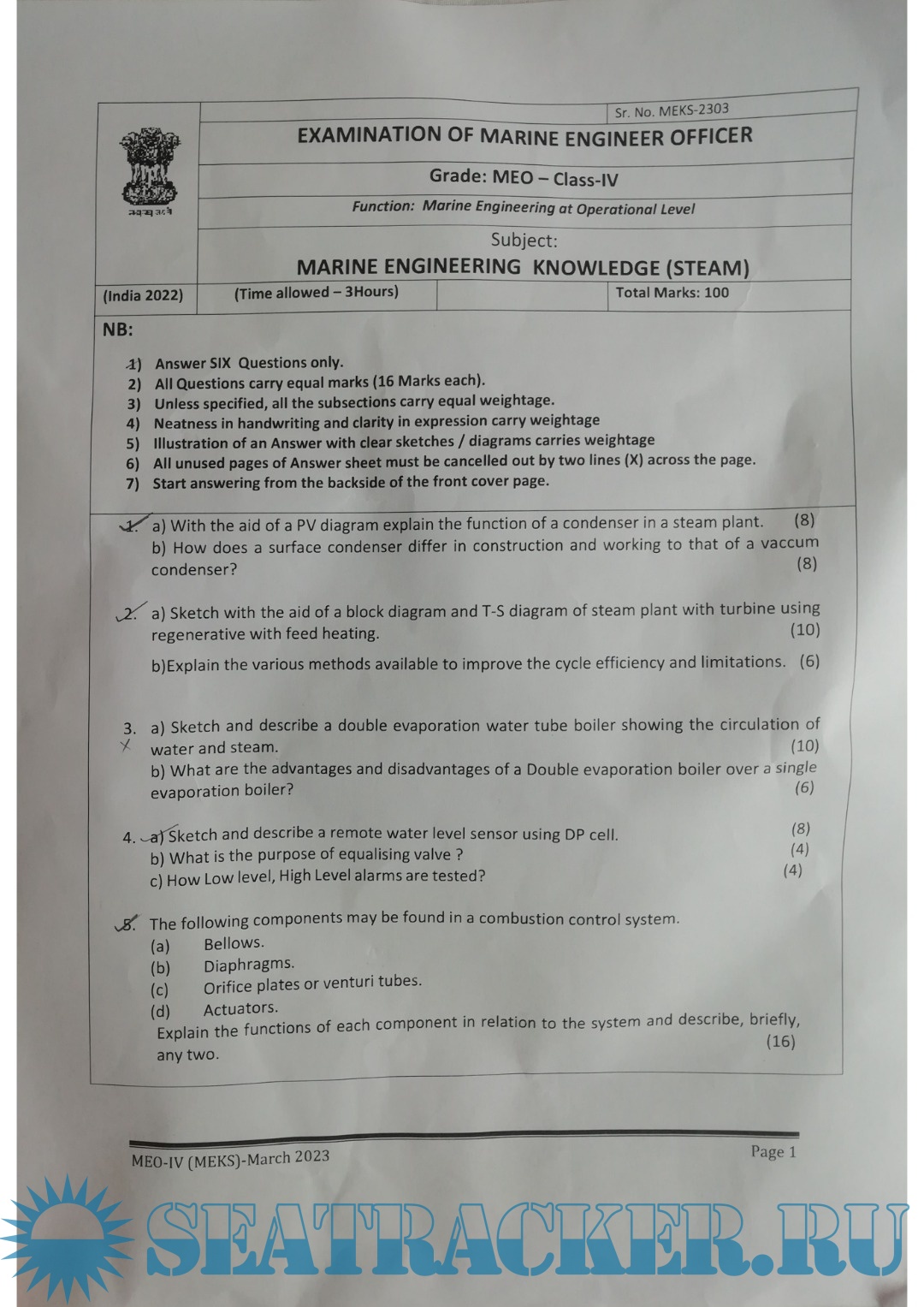 Question Paper (updated March 2023) for M.E.O. Class IV Examinations, India - D.G. Shipping, India…