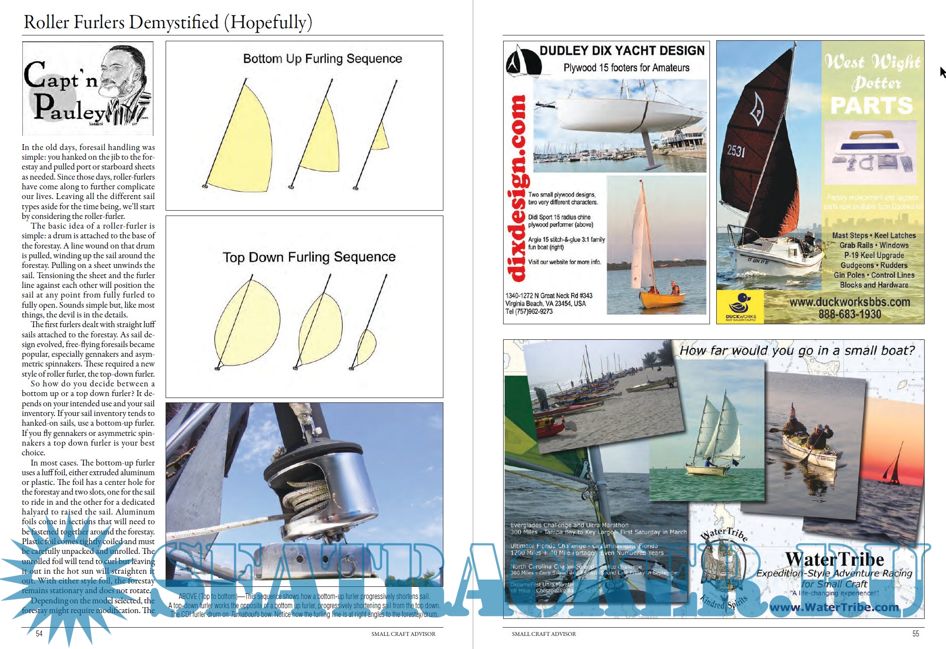 Description: Small boats, big adventure! The only magazine focused on small and trailerable sailboats, cruising, and adventure. Each issue features places to sail, how-to and modification articles, a plan study for the boat builder, and a feature-length review of a production sailboat.