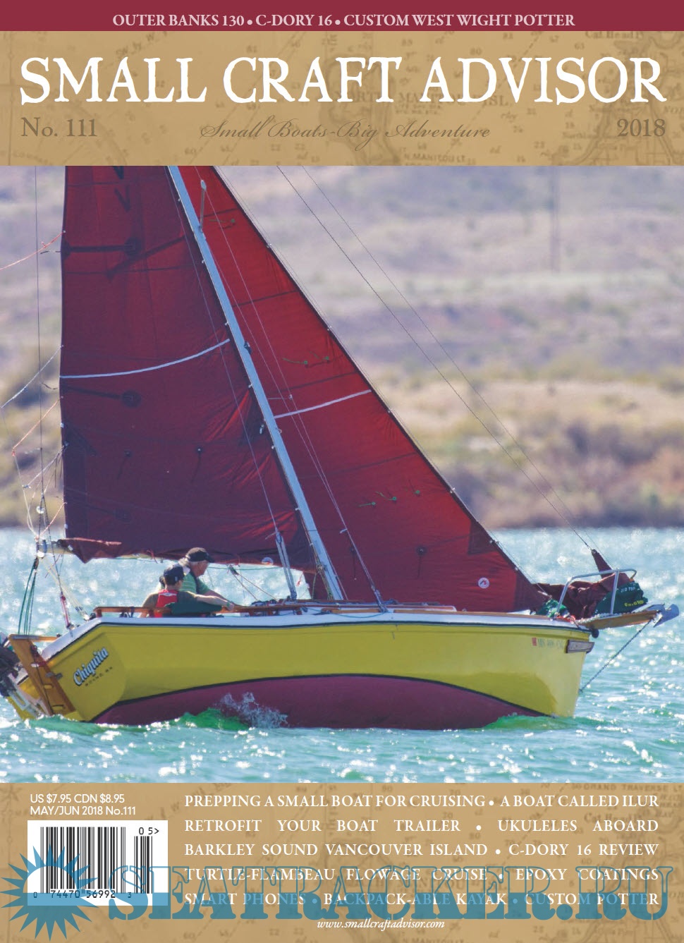 Description: Small boats, big adventure! The only magazine focused on small and trailerable sailboats, cruising, and adventure. Each issue features places to sail, how-to and modification articles, a plan study for the boat builder, and a feature-length review of a production sailboat.