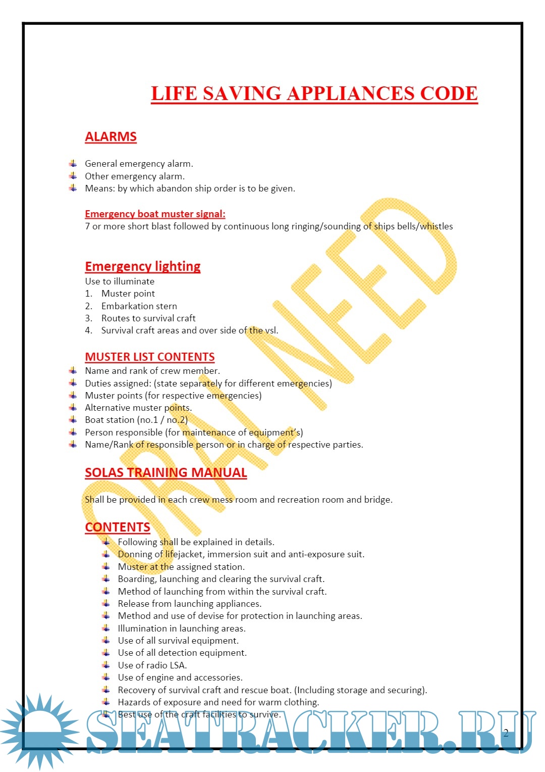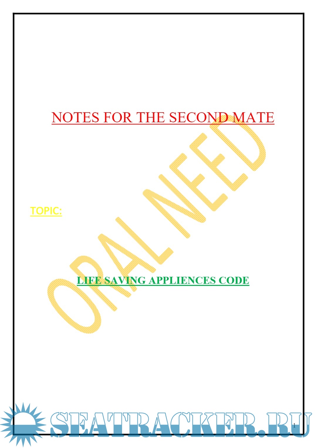 Year: 20xx Language: english Author: Oral Need Format: PDF Quality: eBook Pages count: 13 Description: Notes for the Second Mate: Life Saving Appliances Code