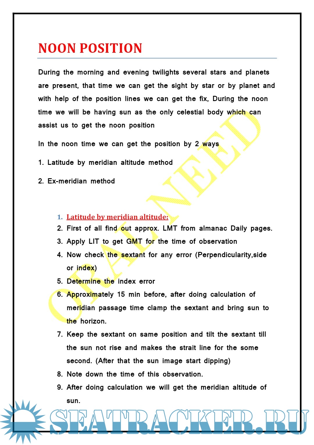 Description: Notes for The Second Mate: Celestial Sights