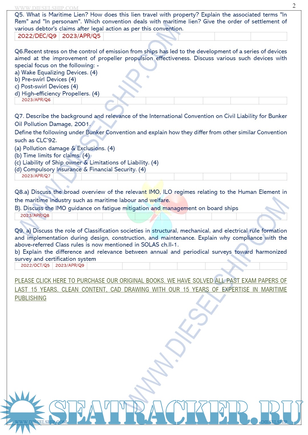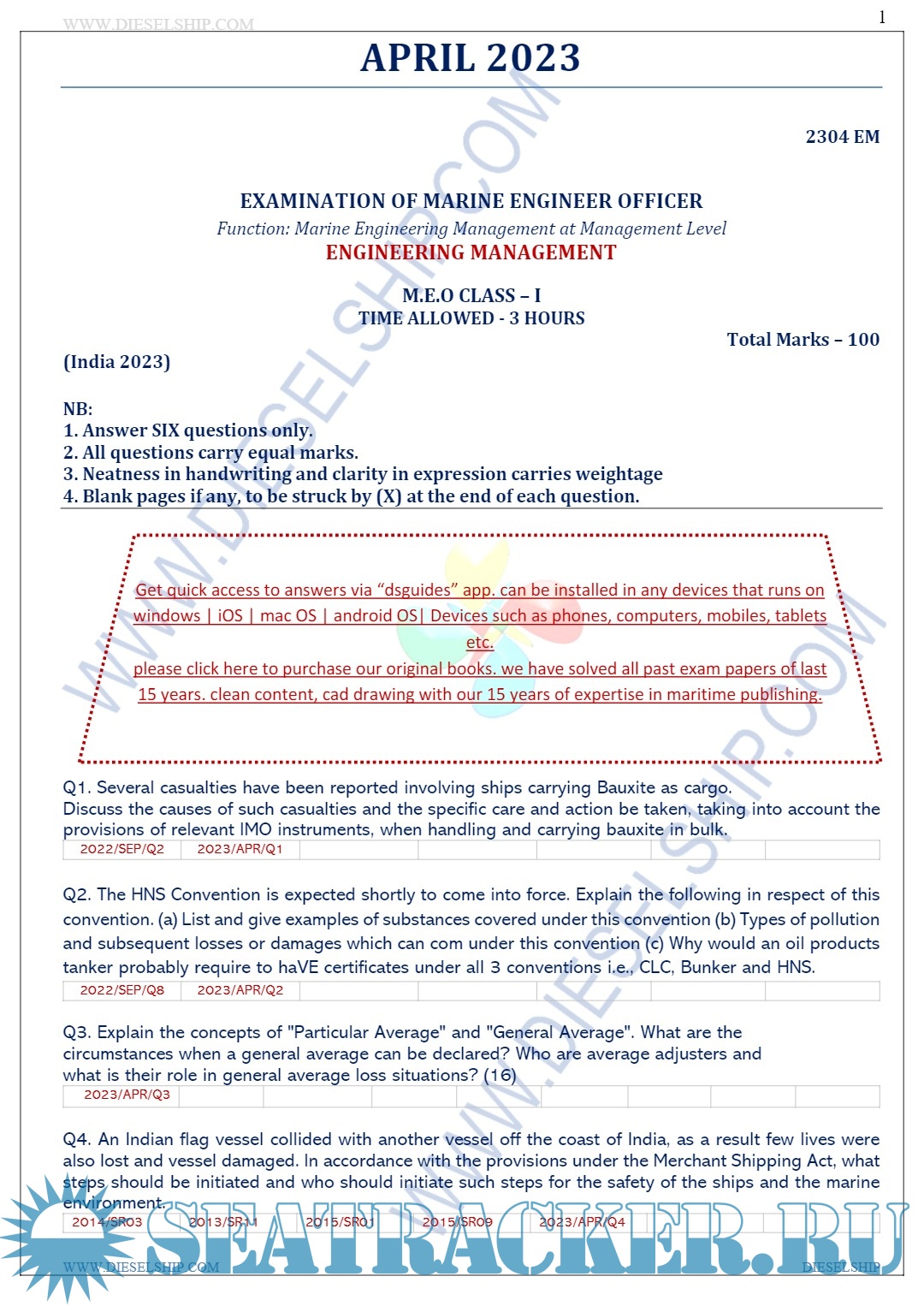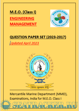 Year: 2023 Language: english Author: Dieselship Format: PDF Quality: eBook Pages count: Multiple Description: M.E.O. Class I Question Paper set for Mercantile Marine Department (MMD), D.G. Shipping India Exams.