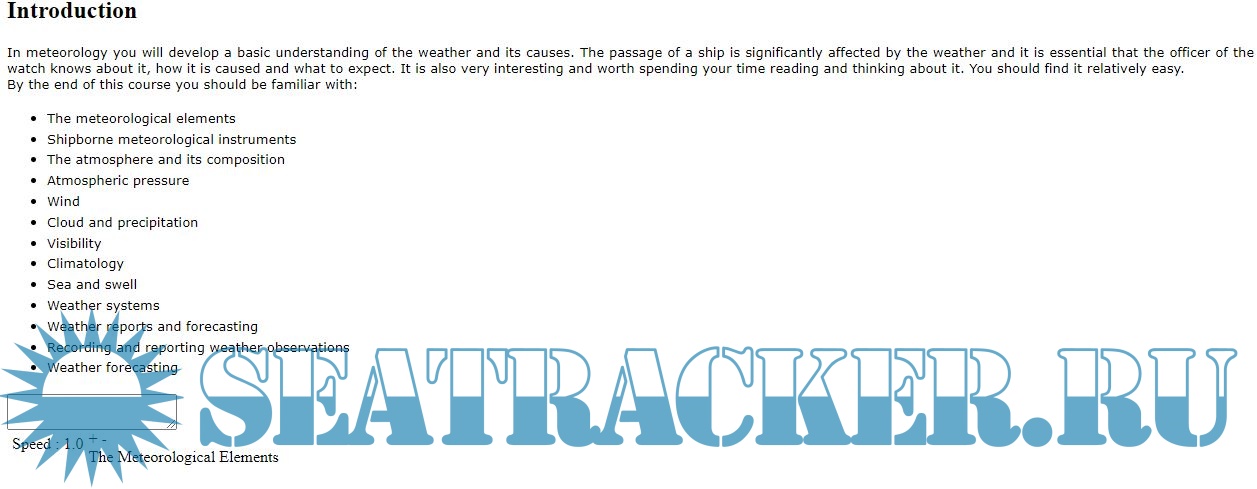 Year: 2020 Language: english Author: ADU Academy Genre: Training courses Publisher: ADU Academy India Private Limited Format: HTML Quality: eBook Pages count: Multiple Description: DGS (Directorate General of Shipping, India) E-Learning Content. Compilation of Online Course / Study Material for Second Mate F.G. - Meteorology from https://dgsmtt.aduacademy.in/ (Login only available for Indian Seafarers having INDOS No.) Login Not Required for users downloading file. Course Content is already compiled as html without any restrictions. View in Chrome/Firefox or any other browser.
