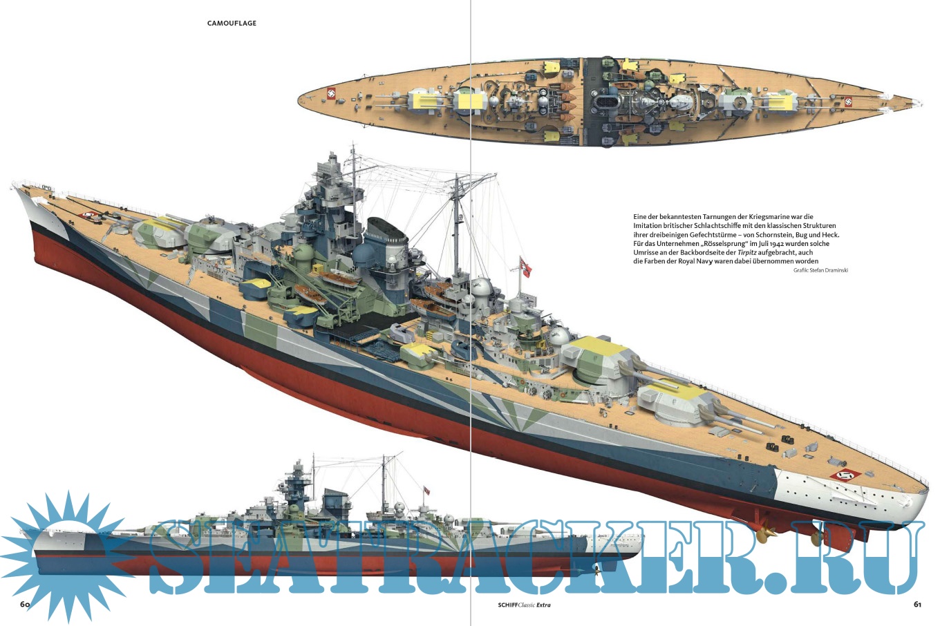 Description: Die Tirpitz war das Schwesterschiff der berühmten Bismarck und Europas größtes Schlachtschiff. Schiff Classic Extra widmet sich diesem Kampfkoloss in einer zweibändigen Ausgabe. Teil 2 reicht von 1936 bis 1941 und dreht sich um Konzeption, Bau und erste Einsätze. 3D-Illustrationen zeigen Technik in allen Details, während eine Fülle kaum bekannter Fotos die Entstehung der Tirpitz und die Verhältnisse an Bord vor Augen führen.