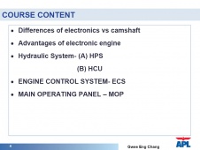 Description: Training Course presentation on MAN B&W Electronic Engine Training by Gwee Eng Chang - Training Manager at American President Lines (APL).