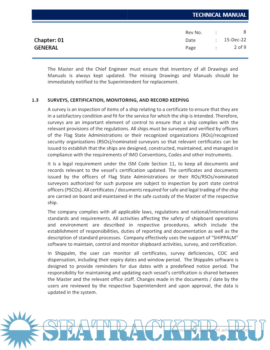 Year: 2022 Language: english Author: Synergy Maritime Pvt. Ltd. Genre: Manual Edition: II | December Format: PDF Quality: eBook Pages count: 318 Description: The Technical manual only provides guidance and instruction on the operation of the vessel. The Technical manual only supports, do not at any time override the specific information provided in the Manufacturer’s instruction manuals.