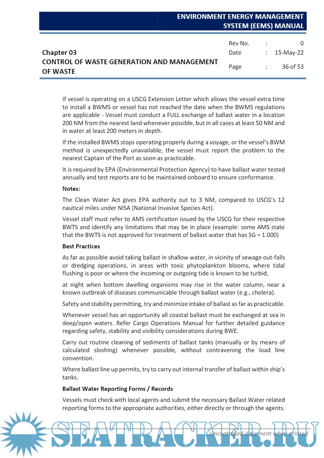 Description: This manual has been prepared to provide ship and shore staff proper understanding of the company`s Environmental Management System, Energy Management System (EnMS) and to implement them.Further, this manual is intended to create awareness on the need to minimize all kinds of wastes generated and energy usage, both onboard and ashore. It is also to control all the aspects/activities which may cause an adverse impact on our environment and increase energy usage, if not carried out in a controlled manner.