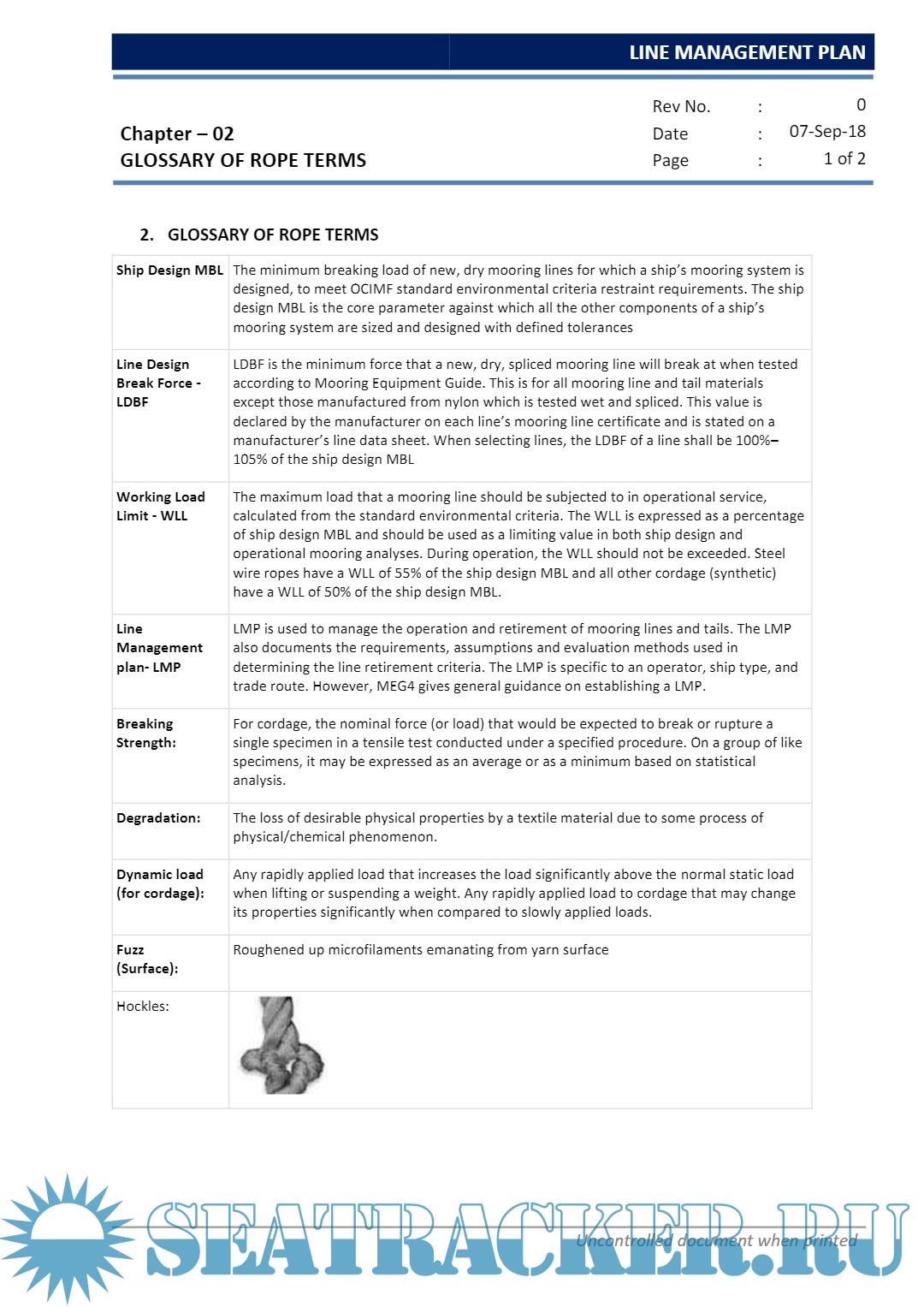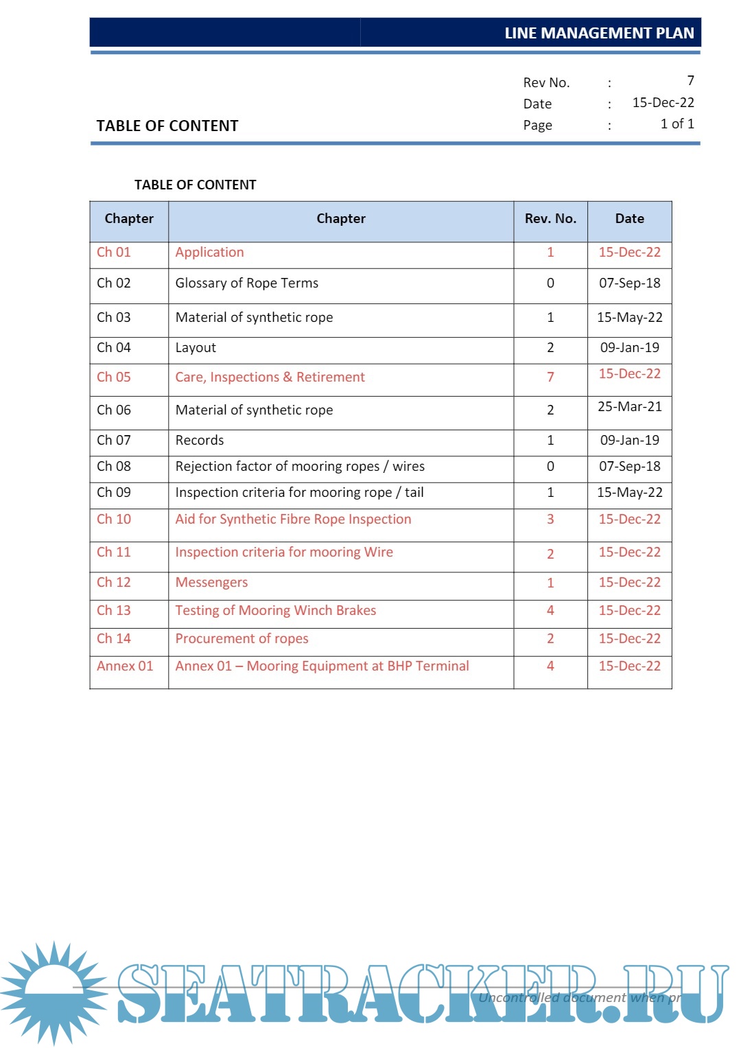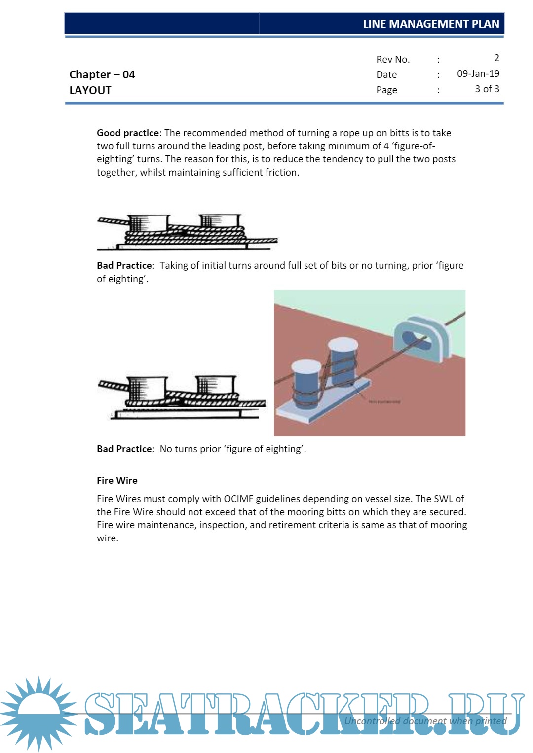 Description: Regulation/guidance mention in this plan for rigging, care, maintenance, inspection and rejection of mooring can be superseded by stringent requirements established by vessel owner, port, trading pattern or manufacturer.