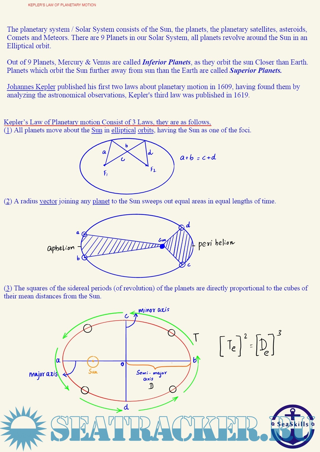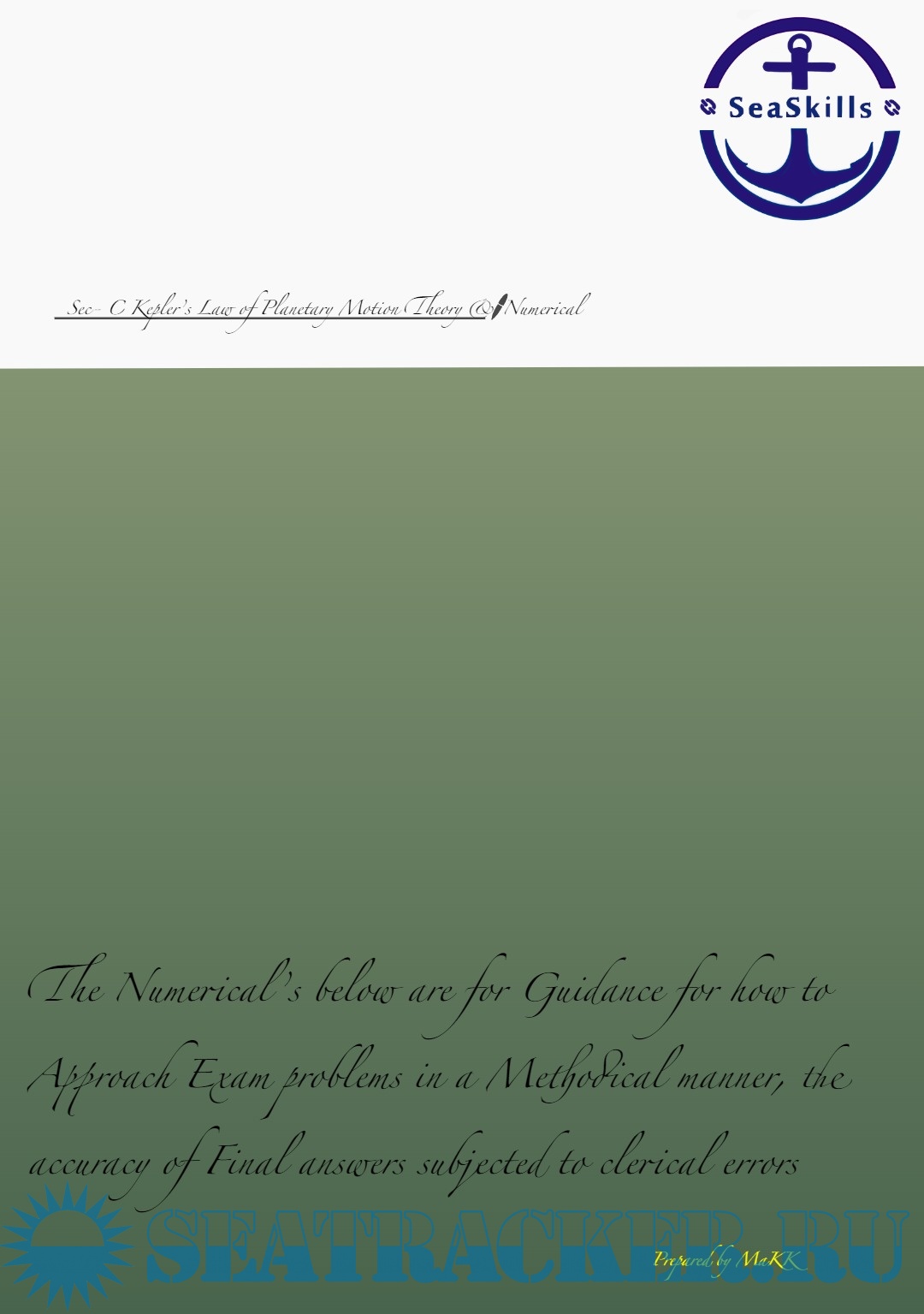 Year: 20xx Language: english Author: Makk Publisher: Seaskills Maritime Academy , Coimbatore, India Format: PDF Quality: eBook Pages count: 11 Description: Paper: Terrestrial and Coastal Navigation. Section C: Kepler's Law of Planetary Motion (Theory and Numerical) solved from Past Question Papers of Mercantile Marine Department (MMD), India Examinations for Phase I (Chief Mate F.G.)