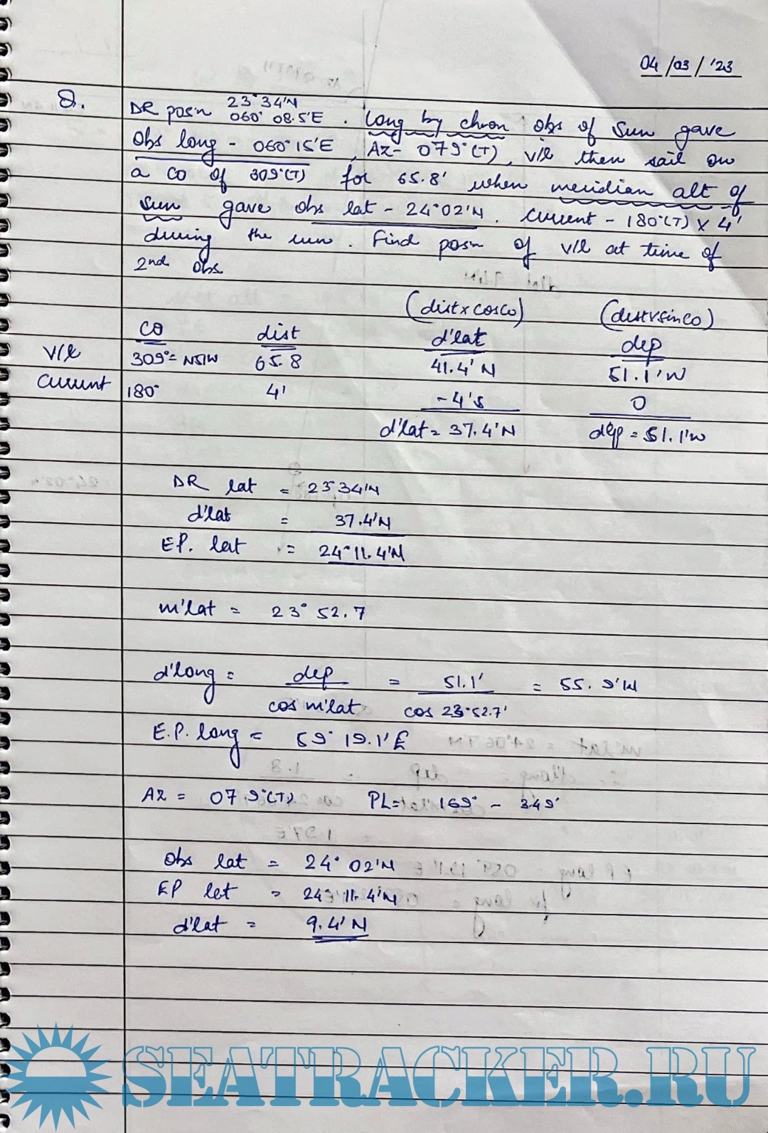 Navigation - Solved Numericals (2022-2012) from Past Question Papers of Mercantile Marine…