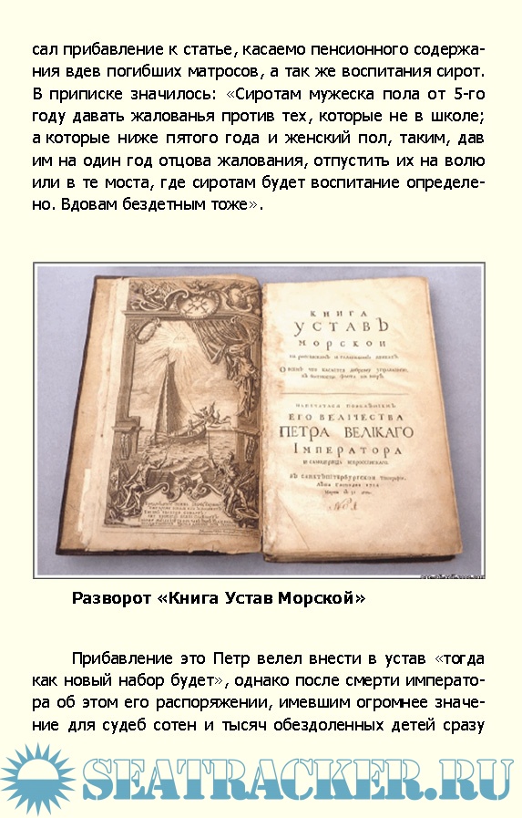 Ответ на все эти вопросы может быть только одни – петровский морской устав оказался не столько перечнем статей и артикулов, сколько книгой, воспитывающей лучшие человеческие чувства: любовь к Родине верность присяге, отвагу и честь, мужестве и долг.