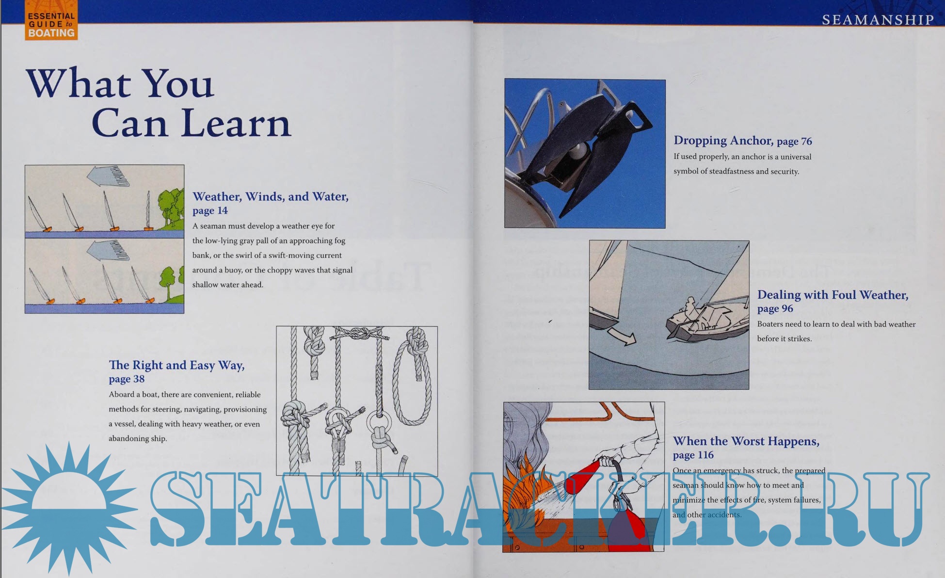 Year: 2011 Language: English Author: Skills Institute Press LLC Genre: Handbook Publisher: Fox Chapel Publishing Edition: First ISBN: 978-1-56523-554-0 Format: PDF Quality: Scanned pages Pages count: 161 Description: Hit the water like an experienced sailor with all the watery wisdom in this handy book! John Kelsey walks you through handling a variety of situations you might face while boating. He'll help you understand how to read the winds and water, drop your anchor, deal with foul weather, and prepare for emergencies. Develop an eye for weather changes. Know when a low-lying pall of fog is fast approaching. Get a glimpse of a swift-moving current before it reaches the boat's buoy, and recognize the choppy, quick waves that are signs of shallow water ahead. Knowing the tips Kelsey writes about in this guide gives you time to think of the next best course of action before you get into trouble. Learn convenient and reliable methods to navigate, steer, or provision a boat. In case of bad weather, learn how to handle it with ease. Additionally, if you can no longer steer the ship, learn the best method to abandon the boat. The book provides each scenario in practical, easy-to-implement steps that you can put to work immediately. The anchor enhances the security and steadfastness of a vessel. Learn how to use the anchor properly and when to drop it, and be able to recognize when you should repair or replace the entire anchoring system, preventing nasty surprises while at sea. Before the heavy weather strikes, know how to prepare for it and reach shore in one piece. Learn some quick dos and don'ts in foul weather to guarantee your safety. Finally, know when it is time to abandon ship and how you can safely do it. Any body of water that is large enough to hold a boat is subject to the powers of Mother Nature and mechanical damage. In times of peril, you need to know how to navigate turbulent waters safely to get ashore. Fortunately, the rules that apply at high seas will work for your motorboat on a lake or at the coast. With all this advice, you will be well-equipped with the right skills to hit the water, navigate, and handle various situations on river, lake, ocean, or sea.