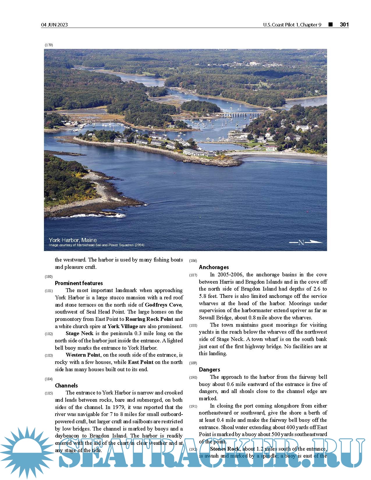 Year: 2023 Language: english Author: NOAA Genre: Documentation Edition: 2023 (53rd) Edition Format: PDF Quality: eBook Pages count: 445 Description: The United States Coast Pilot® consists of a series of nautical books that cover a variety of information important to navigators of coastal and intracoastal waters and the Great Lakes. Issued in ten volumes, they contain supplemental information that is difficult to portray on a nautical chart. Topics in the Coast Pilot include channel descriptions, anchorages, bridge and cable clearances, currents, tide and water levels, prominent features, pilotage, towage, weather, ice conditions, wharf descriptions, dangers, routes, traffic separation schemes, small-craft facilities, and Federal regulations applicable to navigation. This edition cancels the 52nd Edition and includes all previously published corrections. Updated upto 4 June 2023