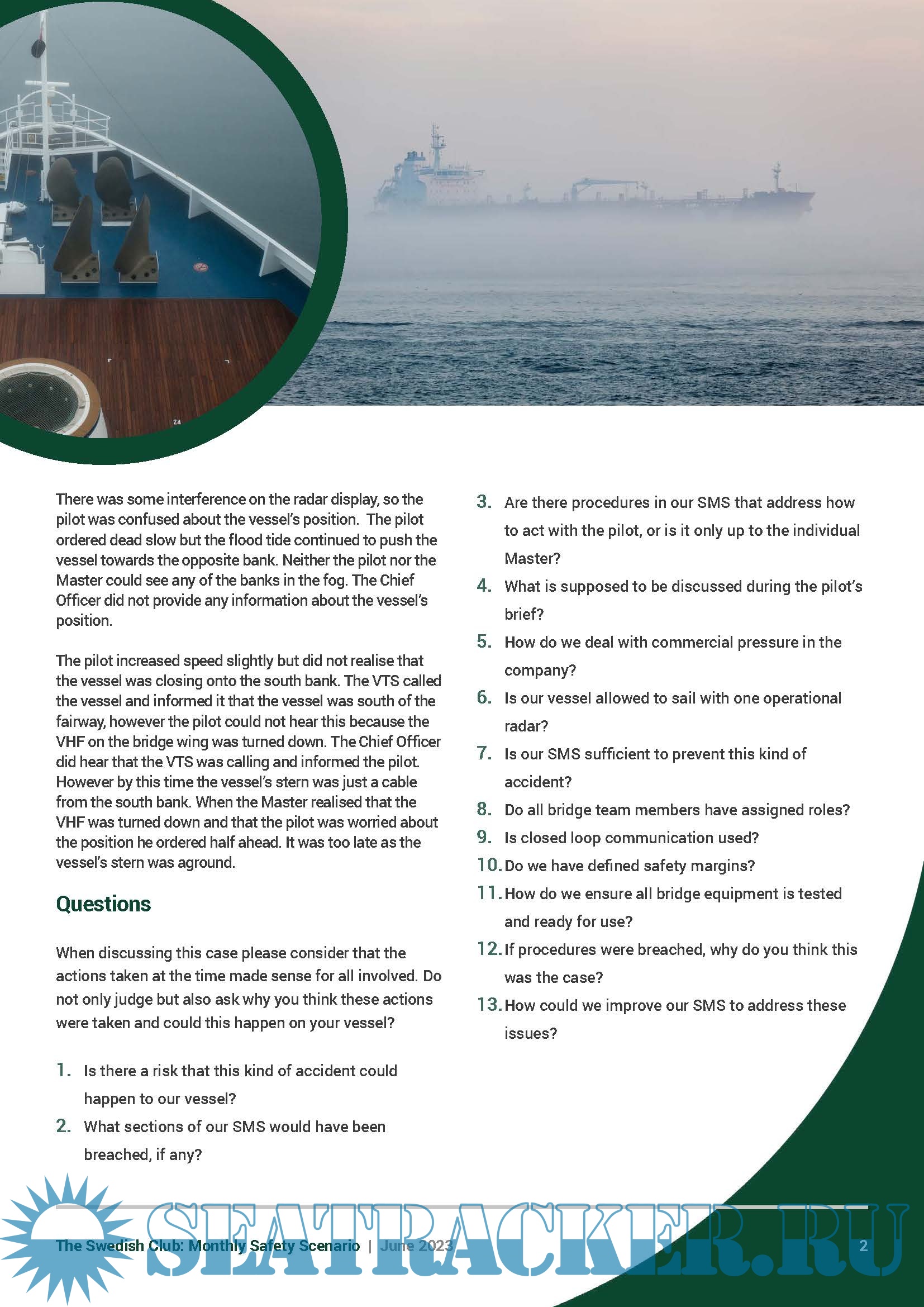 Monthly Safety Scenario (MSS) - (December) - the Swedish Club [2023, PDF]