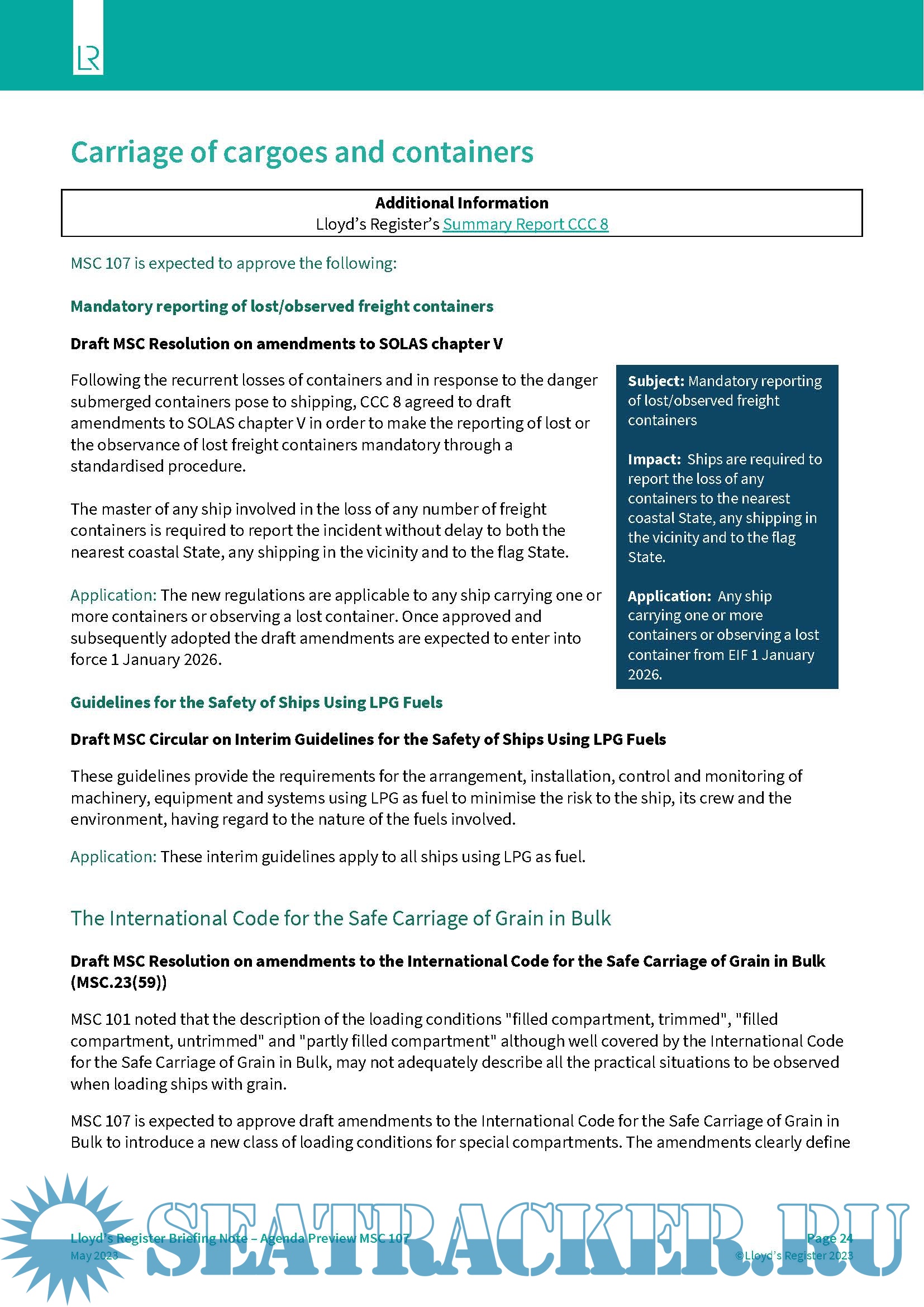 LR Summary Report for the IMO Maritime Safety Committee One Hundred and Fifth session (MSC 105) -…