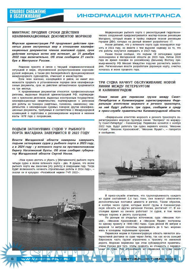 Судовое снабжение и обслуживание май-июнь 2022 - Батраков В.Ф. (главный редактор) [2022, PDF]