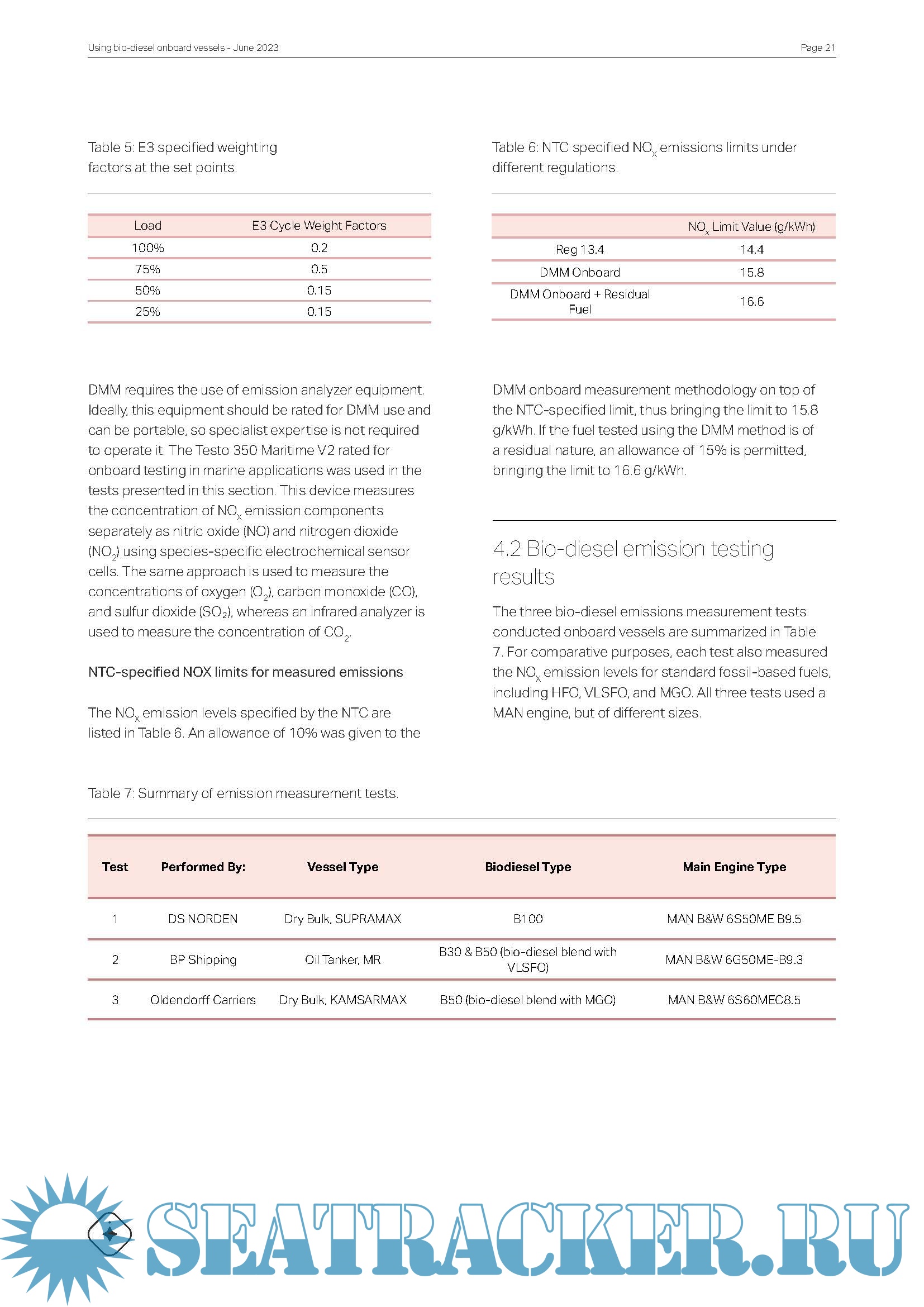 investigations of fuel stability and NOX emissions measurement tests. Furthermore, we provide our